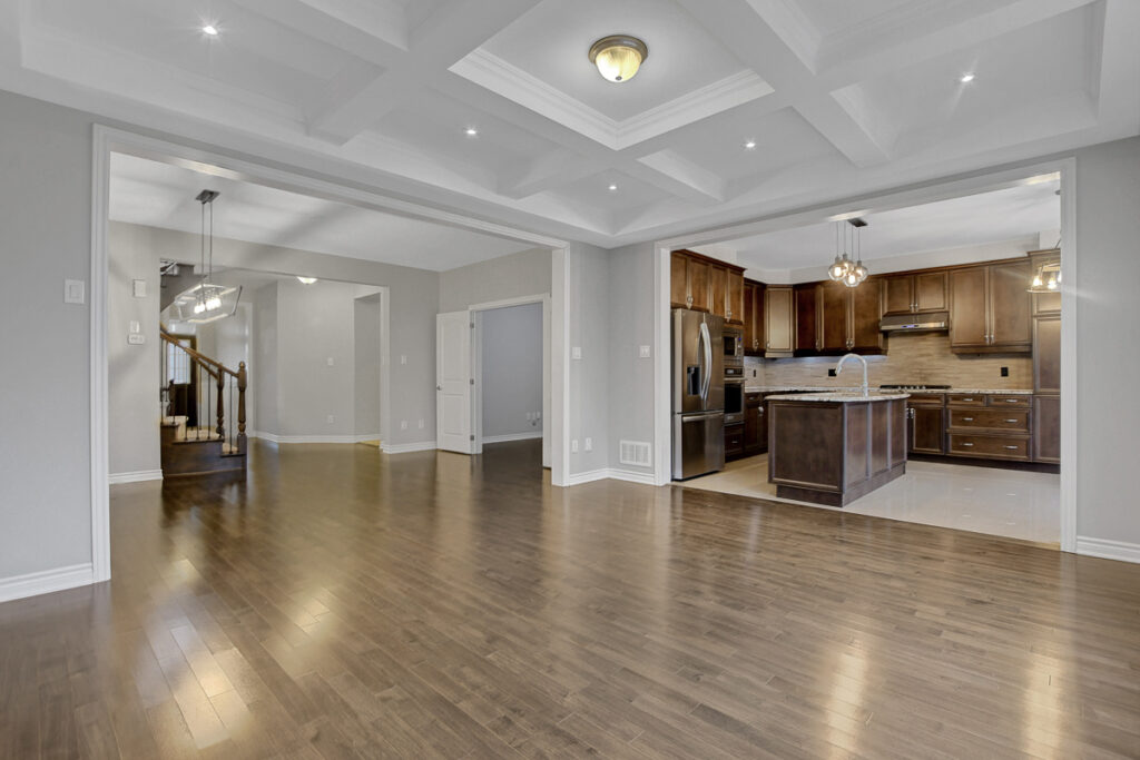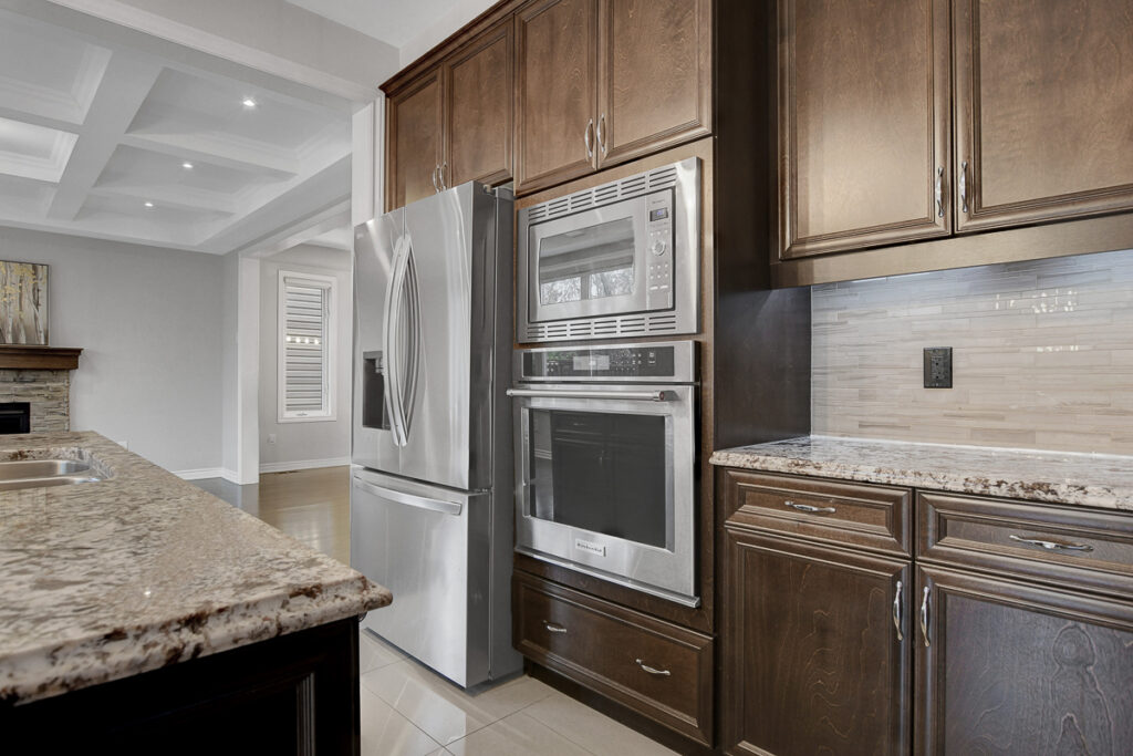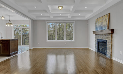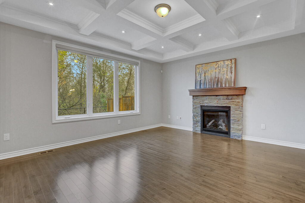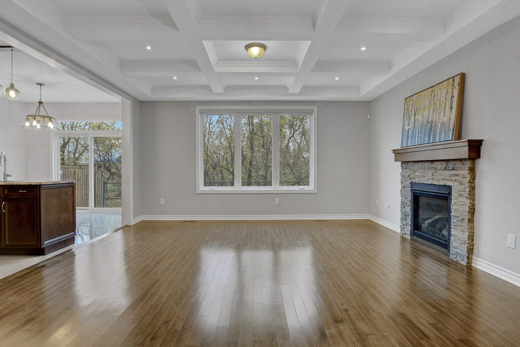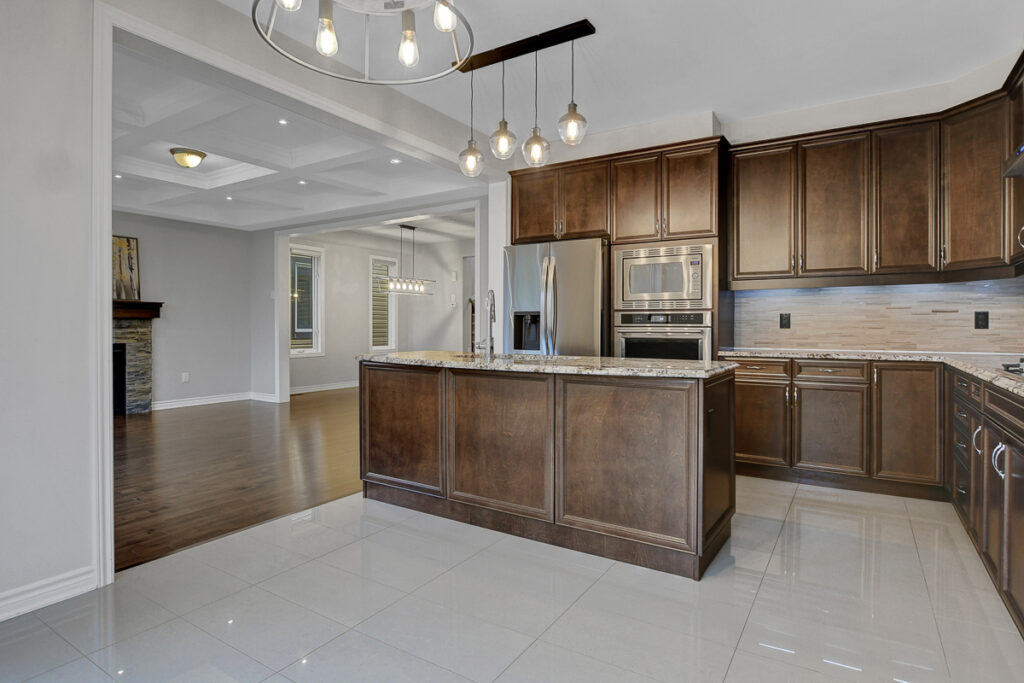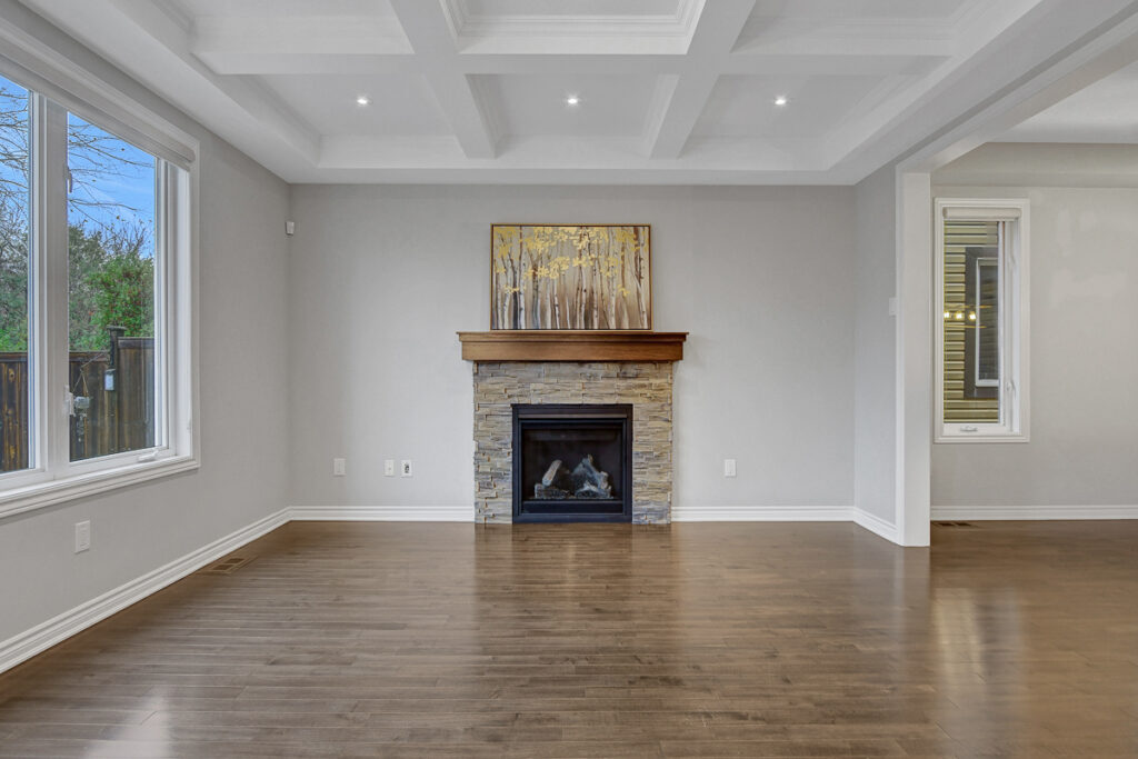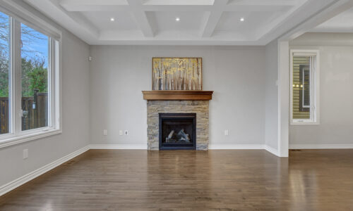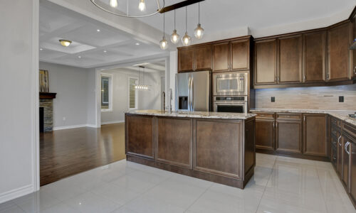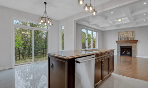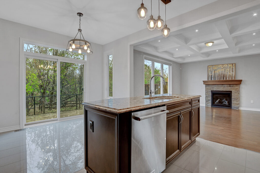 Main level begins with a gracious foyer and a beautifully curved staircase. Fully enclosed den offers an ideal retreat for a home office or reading room. Open-concept layout creates effortless flow between dining, living and kitchen. Living area anchored by a cozy gas fireplace & elegant coffered ceiling. Kitchen shines with rich dark cabinetry, granite countertops, generous centre island + casual eat-in space. Stylish powder bath, organized mudroom & plenty of storage on main level. Spacious loft area upstairs with custom built-in cabinetry serves as the perfect family gathering space or media room. Upper level features 3 beautifully appointed bedrooms, each with its own walk-in closet.