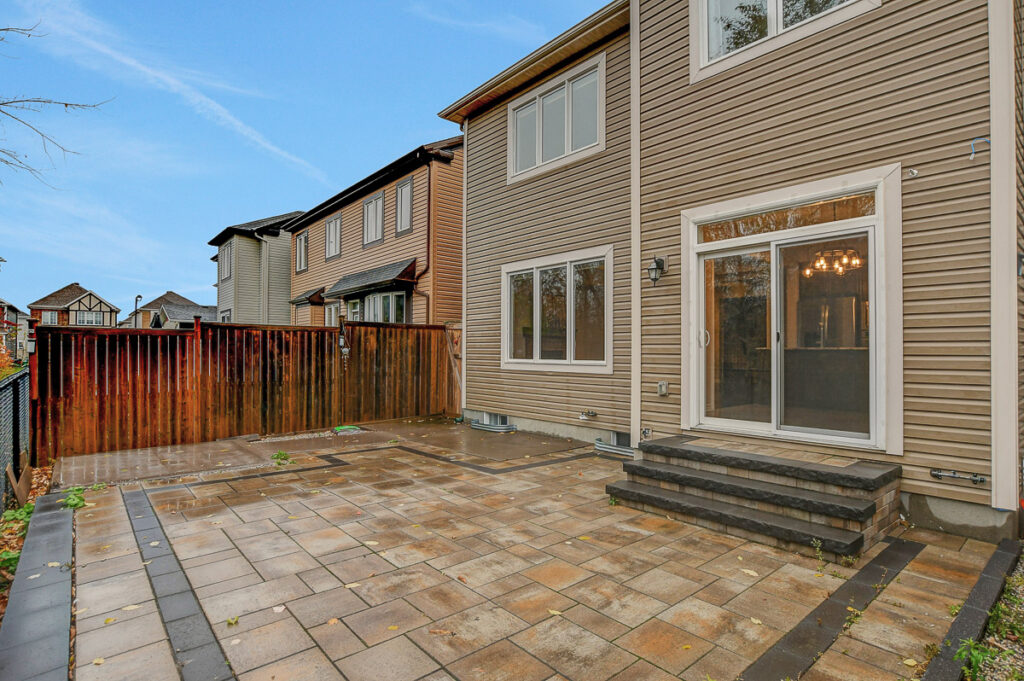 Fully fenced backyard is designed for enjoyment without the hassle of yard work, boasting a large stone patio perfect for entertaining & relaxing. Amazing family-oriented neighbourhood, well established with tons of new retail going in close by.