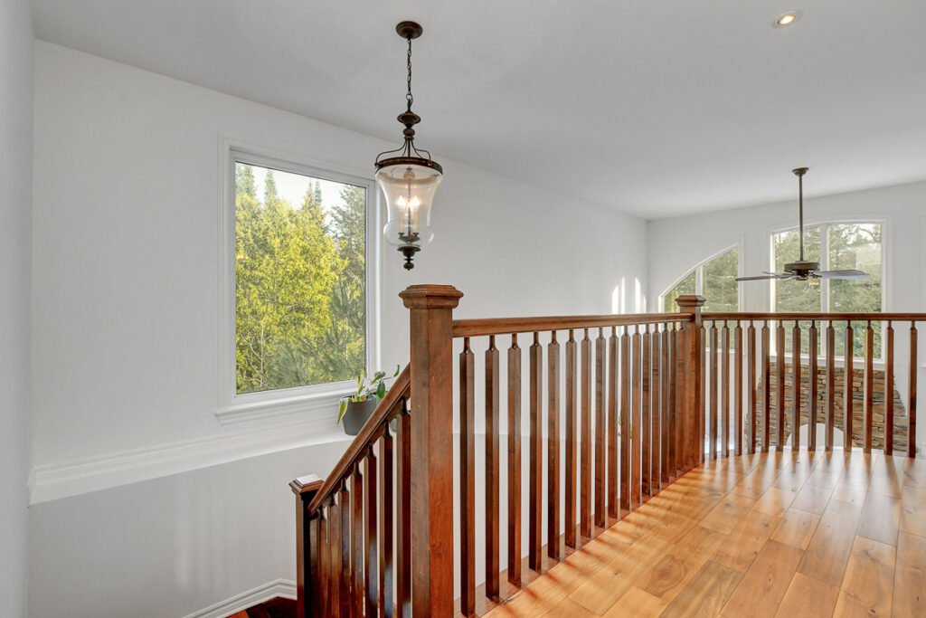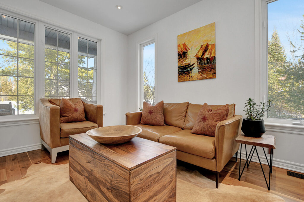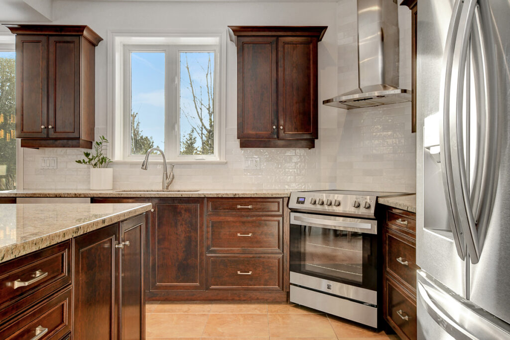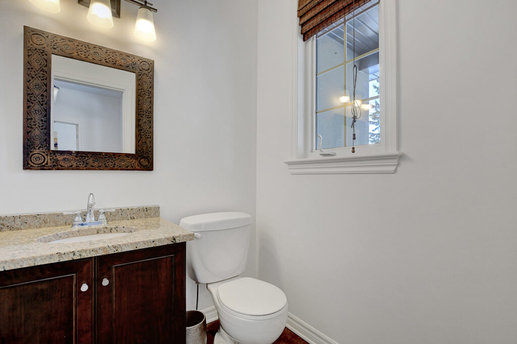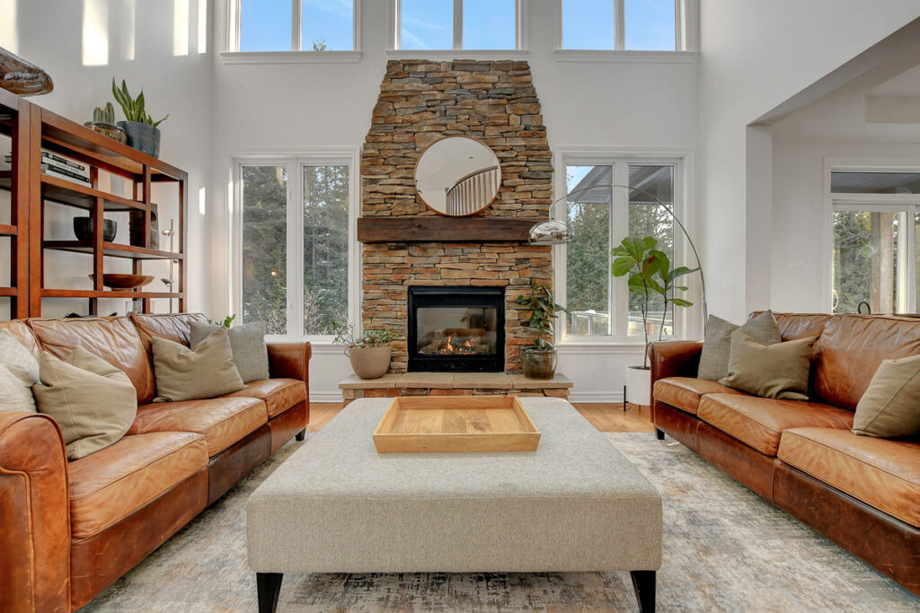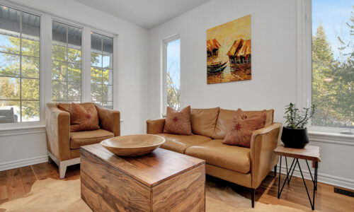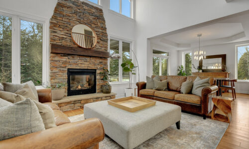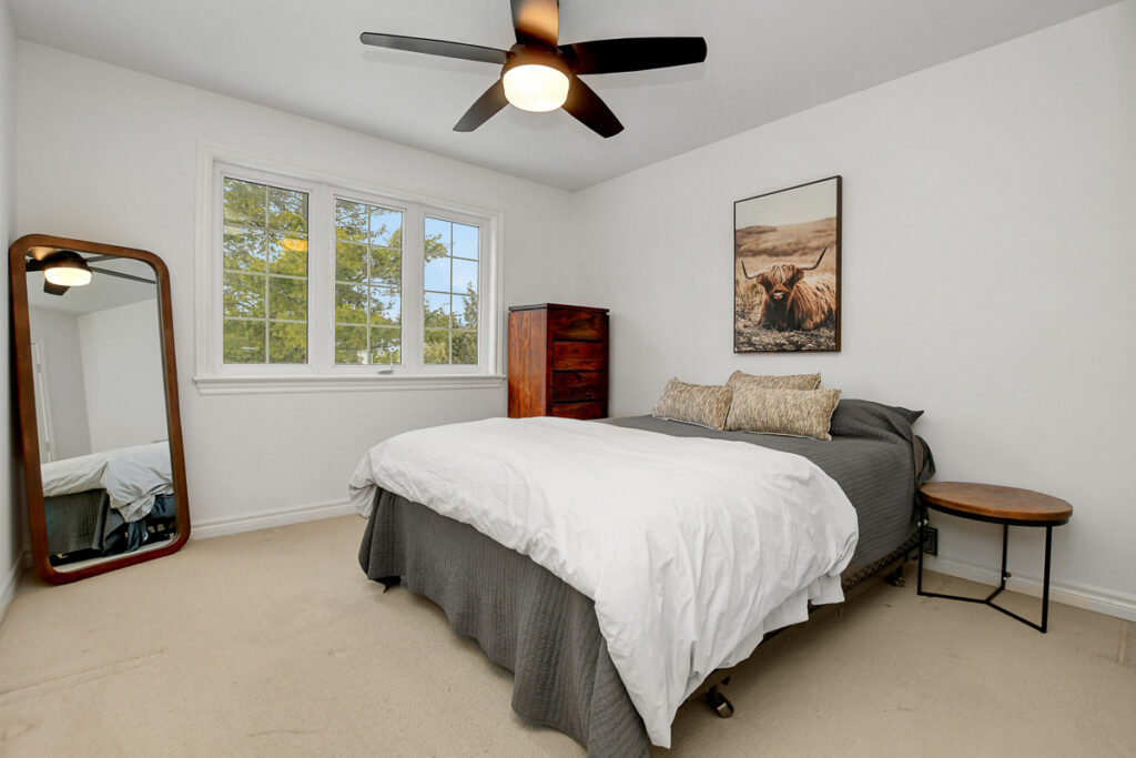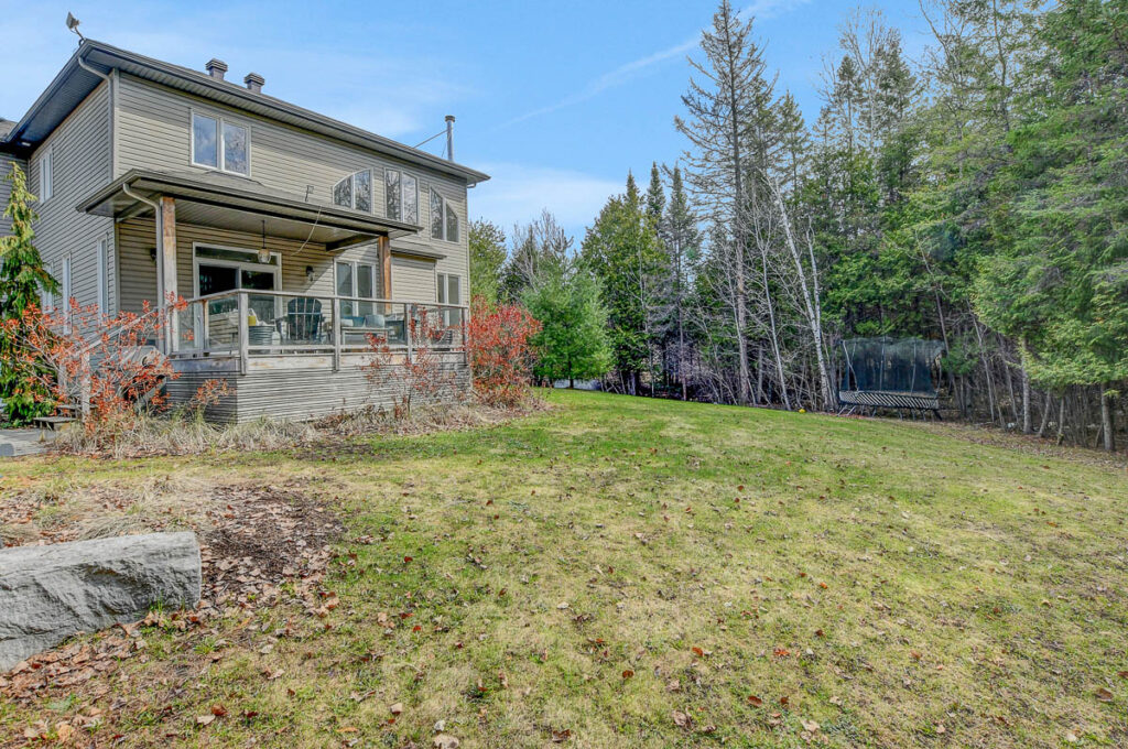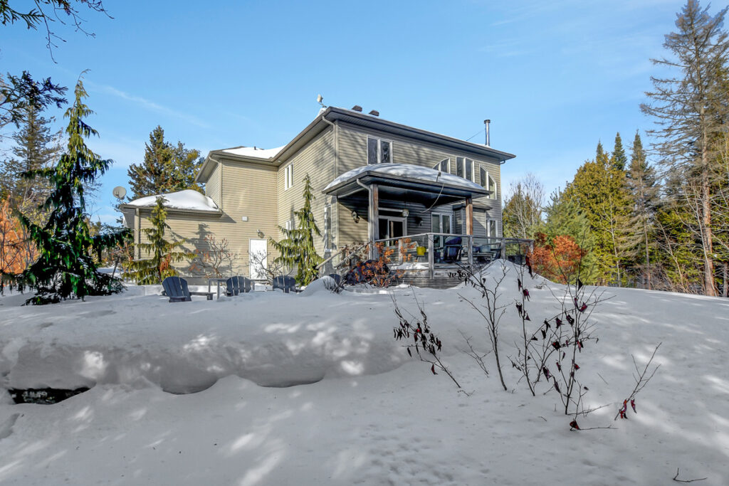 Mid-tone engineered hardwood floors, crisp white walls, tall ceilings & expansive windows that flood the home with natural light. Spacious foyer connects to a well-designed laundry & mudroom with storage + garage access. Separate family room offers flexibility for a lounging area or private home office. Stunning open-concept layout with a showstopping living room boasting soaring two-storey ceilings, dramatic windows overlooking the scenic treed backyard + gas fireplace with stone surround. Dining area sits beneath a tray ceiling and provides direct access to a large, raised covered cedar deck-perfect. Kitchen features rich dark wood cabinetry, granite counters, subway tile backsplash and a generous centre island. Primary retreat complete with a spacious walk-in closet and a fully appointed ensuite bath. Three additional bedrooms share a well-designed full bathroom with double sinks.