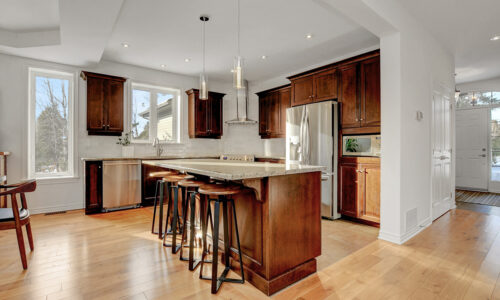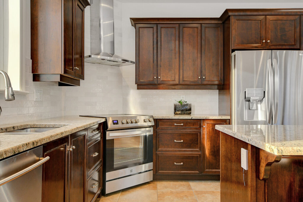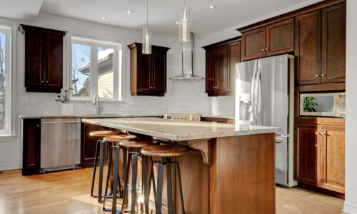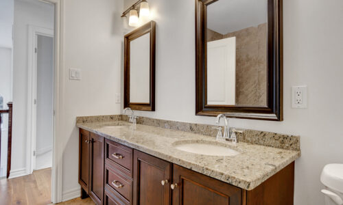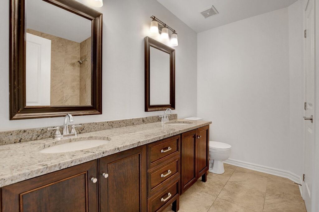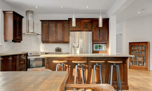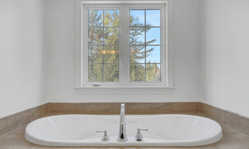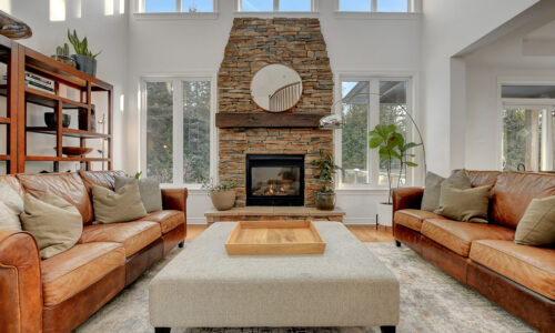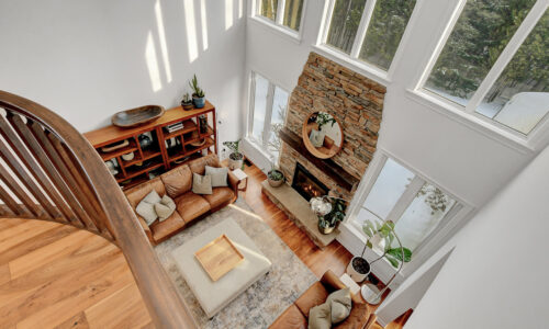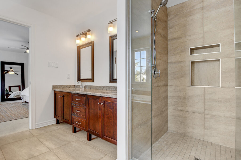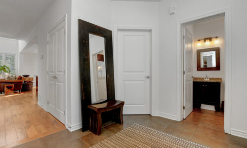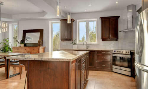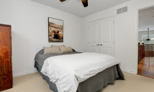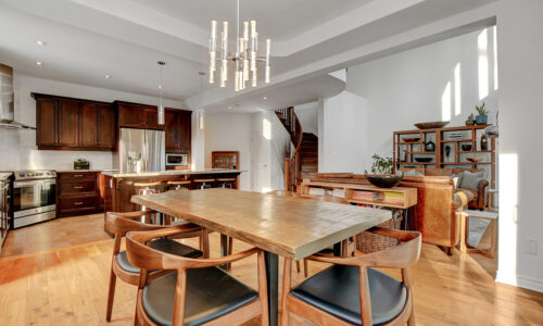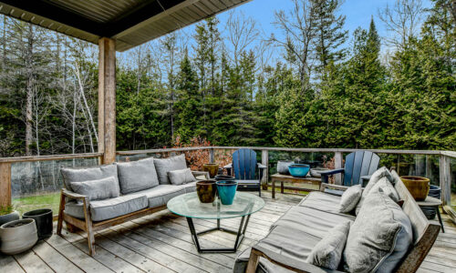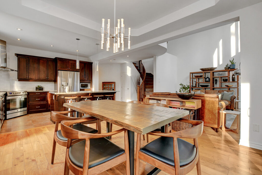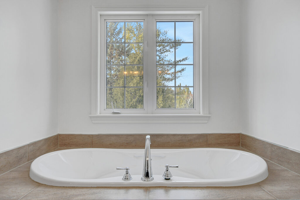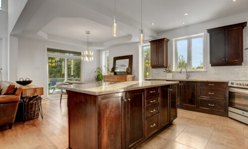Mid-tone engineered hardwood floors, crisp white walls, tall ceilings & expansive windows that flood the home with natural light. Spacious foyer connects to a well-designed laundry & mudroom with storage + garage access. Separate family room offers flexibility for a lounging area or private home office. Stunning open-concept layout with a showstopping living room boasting soaring two-storey ceilings, dramatic windows overlooking the scenic treed backyard + gas fireplace with stone surround. Dining area sits beneath a tray ceiling and provides direct access to a large, raised covered cedar deck-perfect. Kitchen features rich dark wood cabinetry, granite counters, subway tile backsplash and a generous centre island. Primary retreat complete with a spacious walk-in closet and a fully appointed ensuite bath. Three additional bedrooms share a well-designed full bathroom with double sinks.