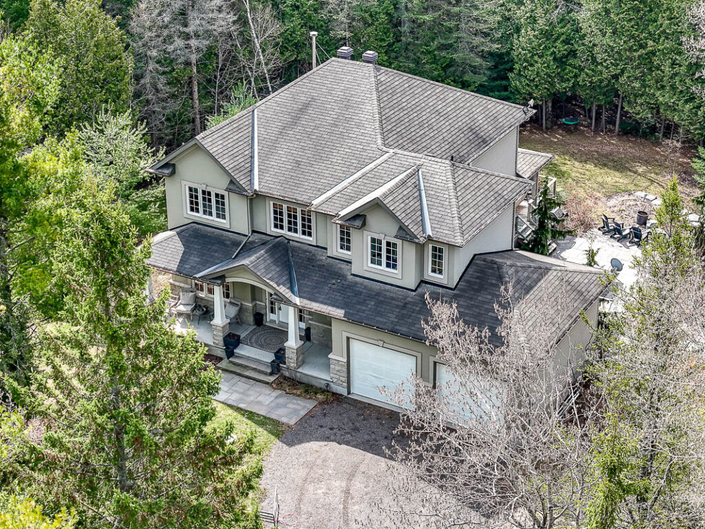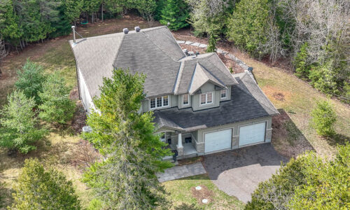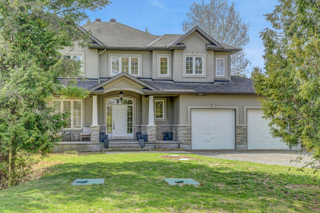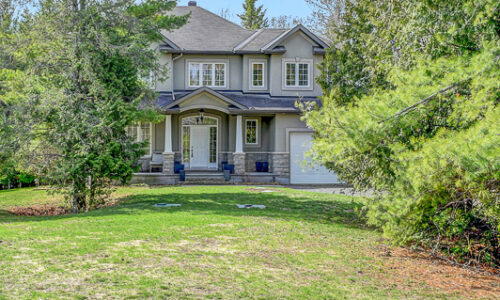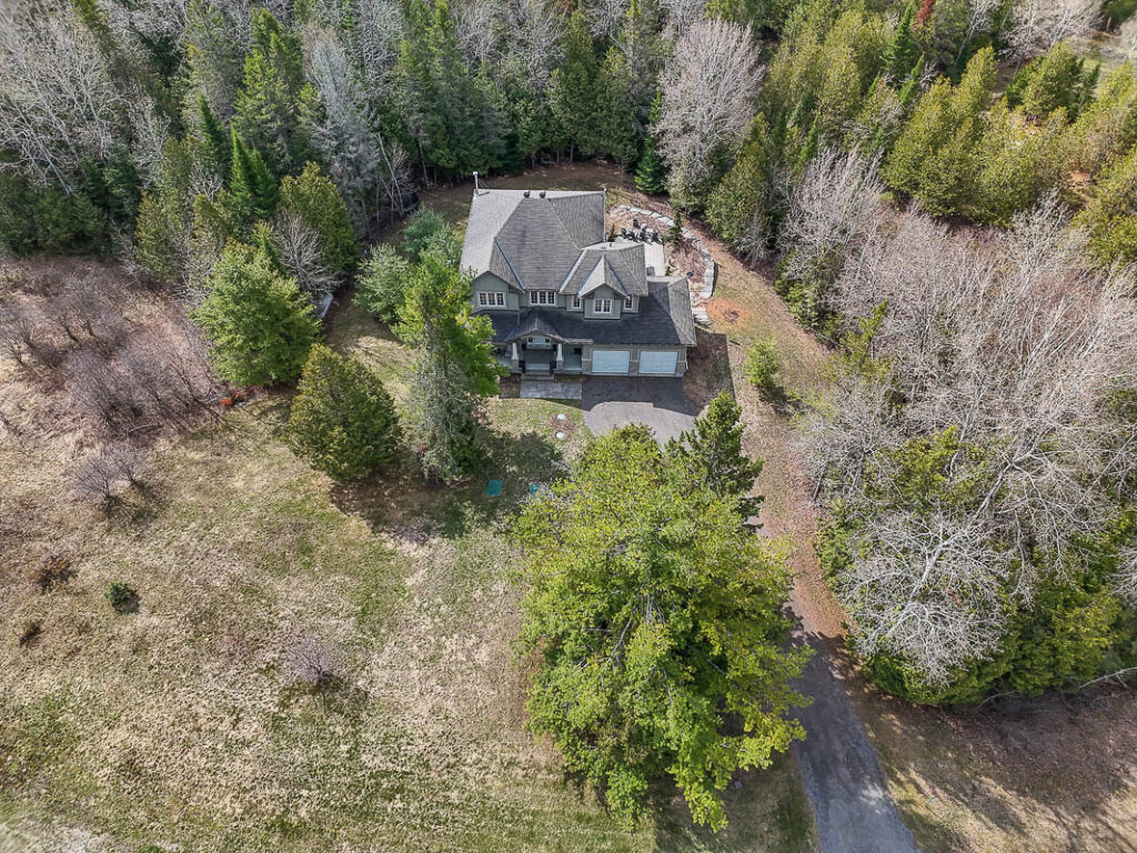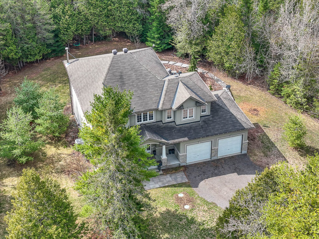 Privately nestled behind a canopy of mature trees on a spectacular 2+ acre reverse pie lot with great frontage. Striking custom-built home by Doyle Homes LTD pairs architectural presence with the serenity of an exclusive rural setting. Lush perennial gardens & covered front porch create an inviting first impression. Striking rooflines and an oversized double garage with convenient rear yard entry.
