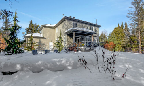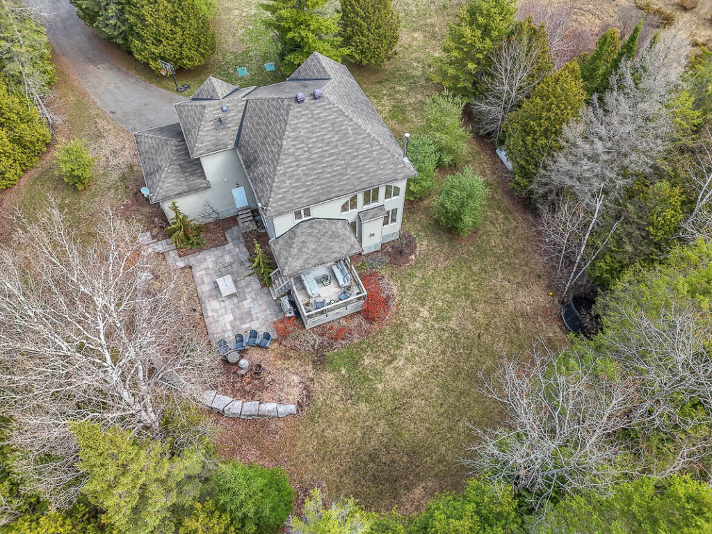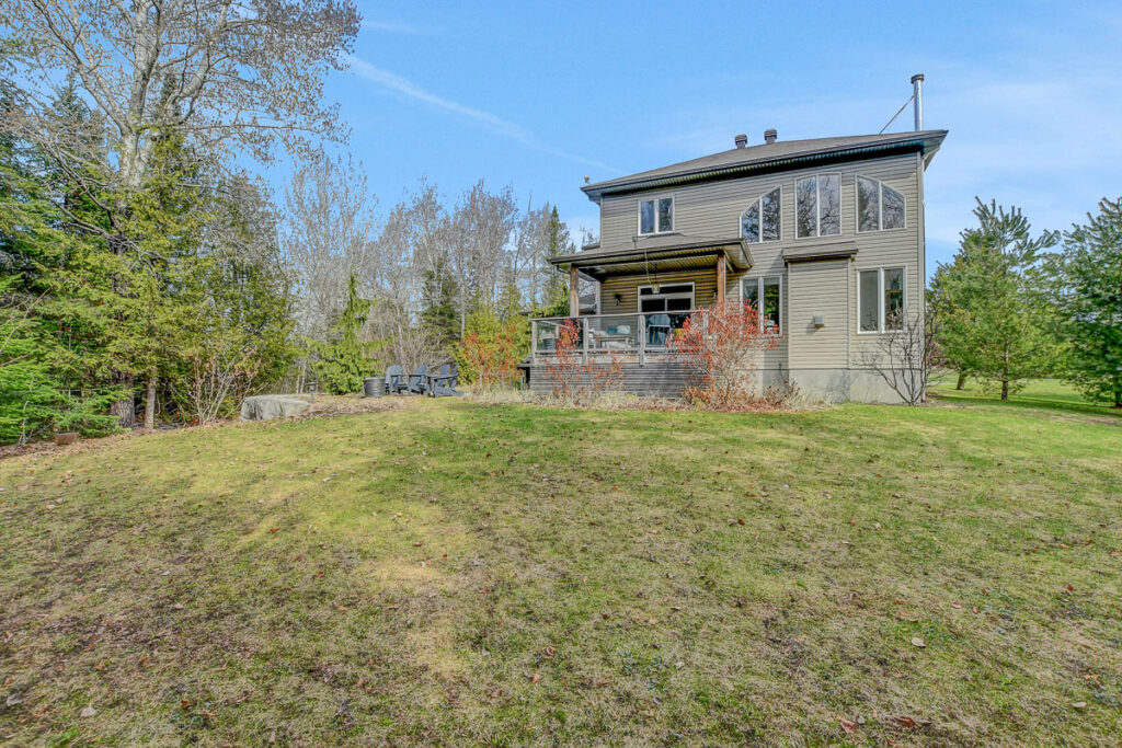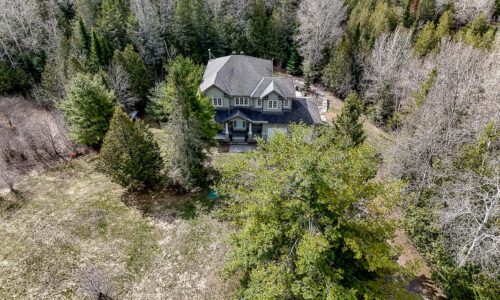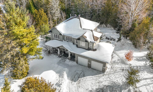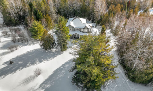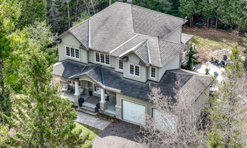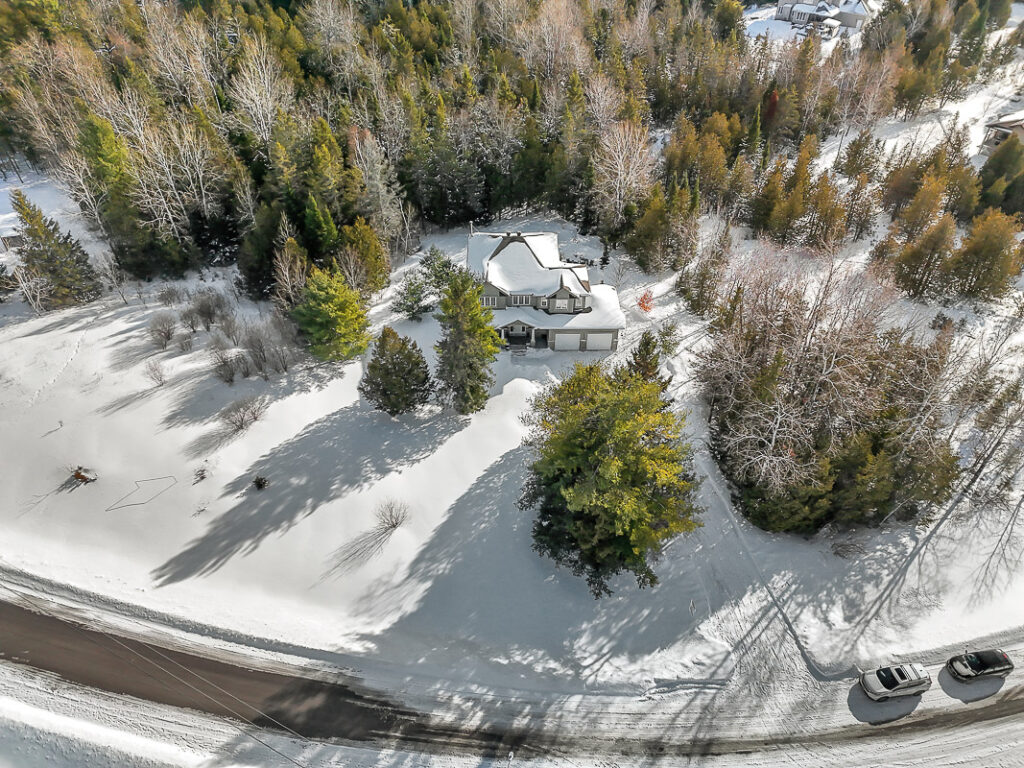 Privately nestled behind a canopy of mature trees on a spectacular 2+ acre reverse pie lot with great frontage. Striking custom-built home by Doyle Homes LTD pairs architectural presence with the serenity of an exclusive rural setting. Lush perennial gardens & covered front porch create an inviting first impression. Striking rooflines and an oversized double garage with convenient rear yard entry.