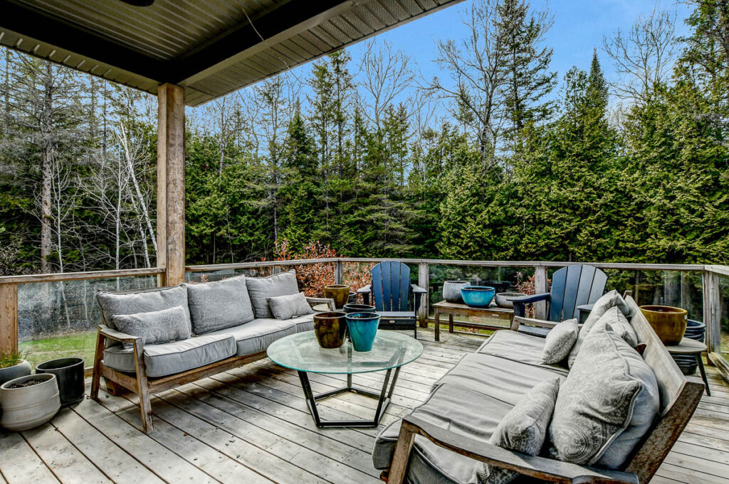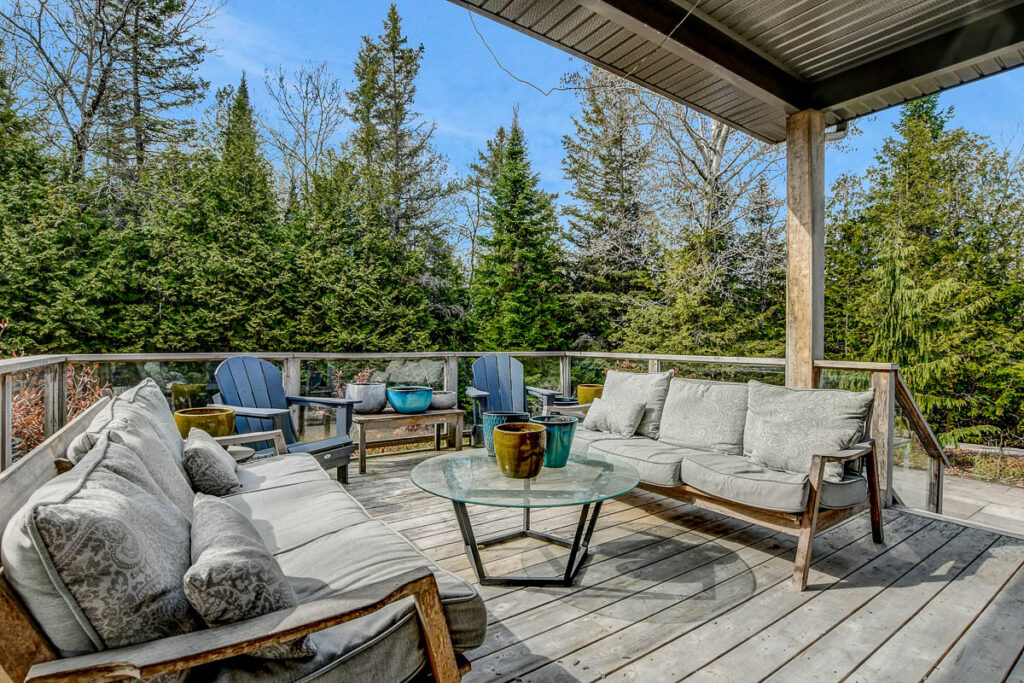 Backyard is exceptionally private, lined with mature trees and offering a peaceful natural oasis. Covered deck + patio provides ample space for entertaining, expansive green space allows room to run, play or enjoy the tranquility.