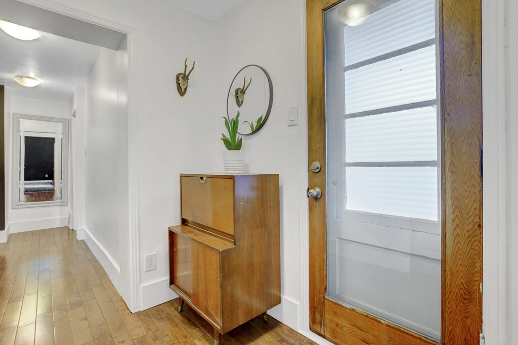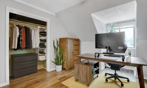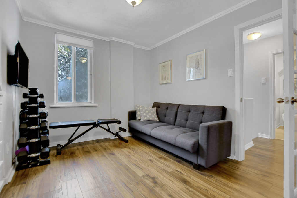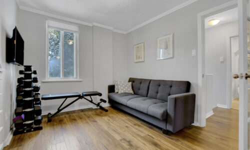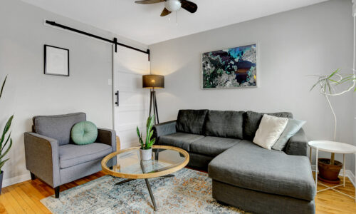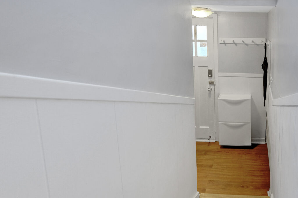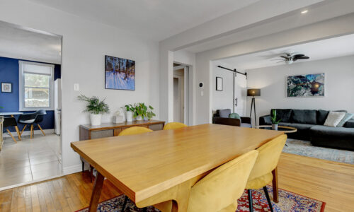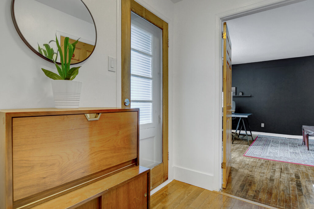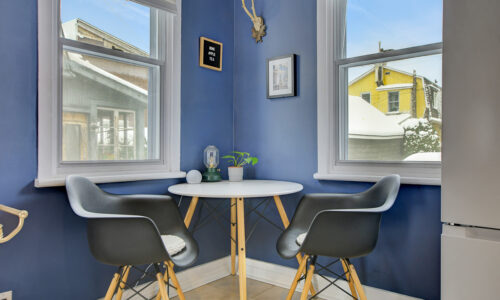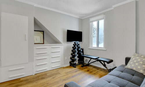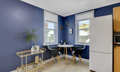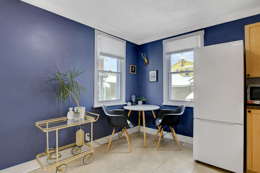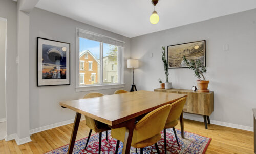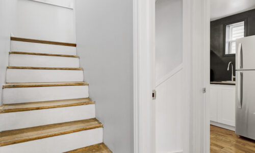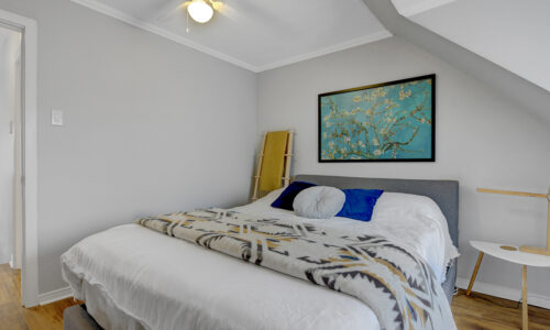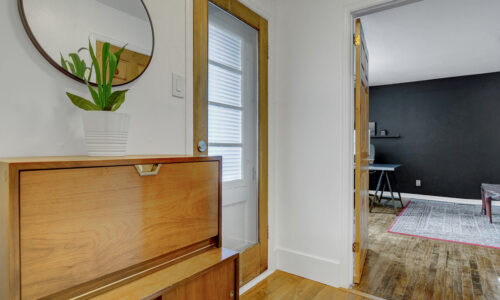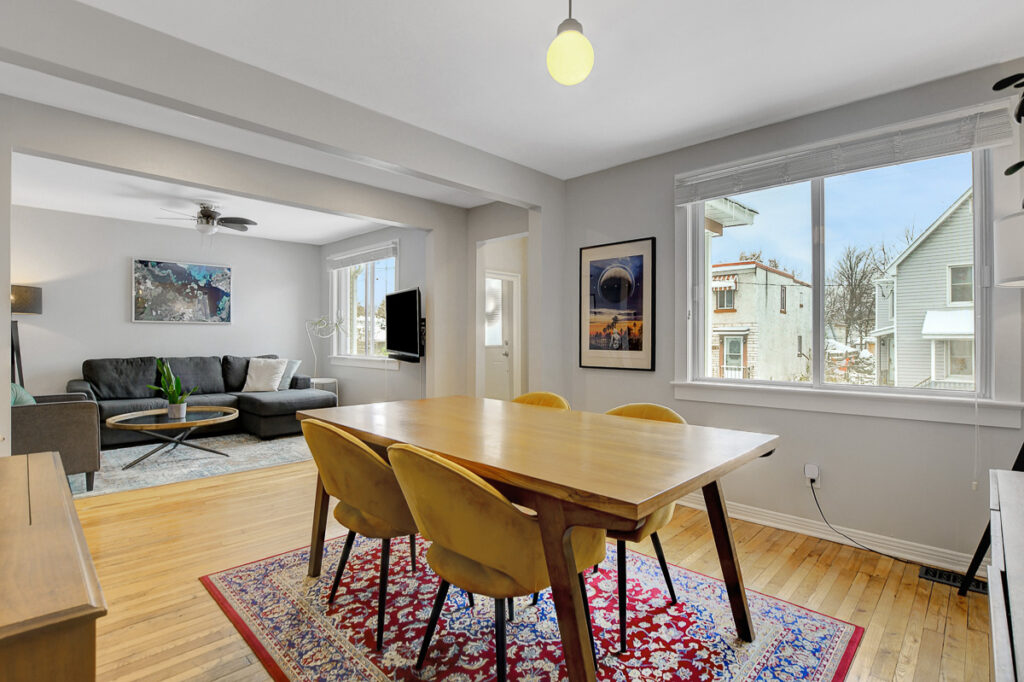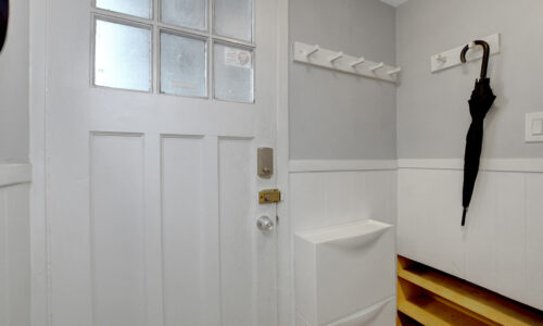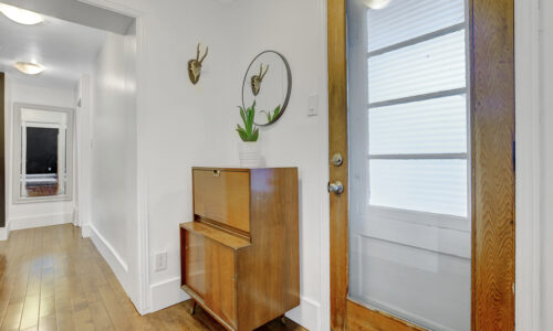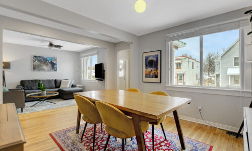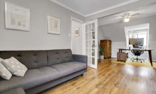 Welcoming foyer opens between the living & dining rooms, creating a natural flow through the main level. Fresh neutral tones, sunny natural light and classic hardwood floors preserve the home’s original charm. Dining area transitions into a spacious kitchen at the back of the home, offering ample cabinetry, generous storage and a comfortable eat-in space.The second unit, with both internal and separate exterior entrances makes it a great income opportunity; bright windows, a full bathroom, well-appointed kitchen and generous separate bedroom. Upstairs, the impressive primary bedroom features excellent built-in storage and closet space, crown moulding and a flexible layout with two distinct zones – a defined sleeping area plus a bonus sitting or work-from-home space. A second bedroom and a renovated full bathroom with a shower-tub combination complete this level.