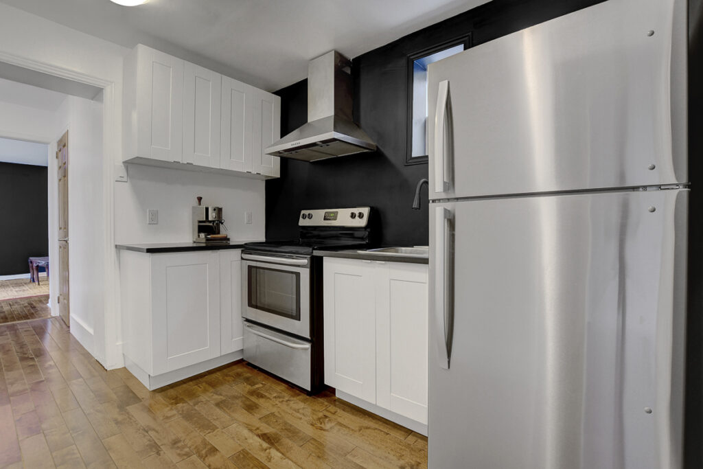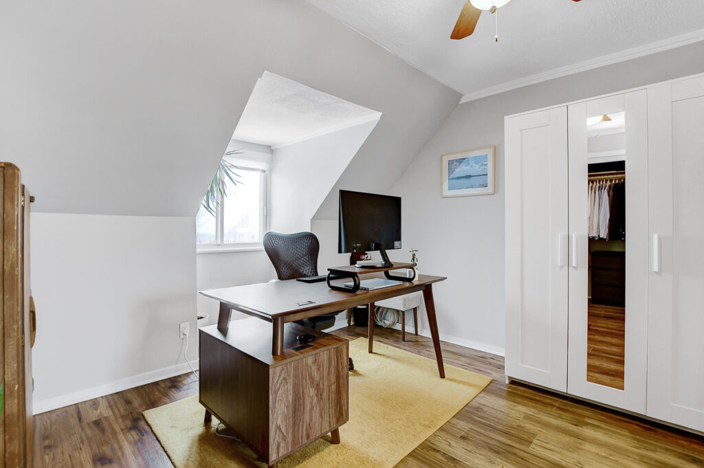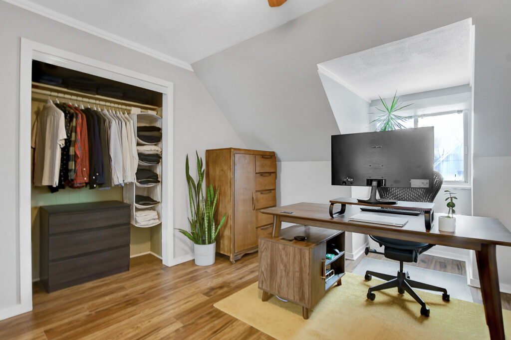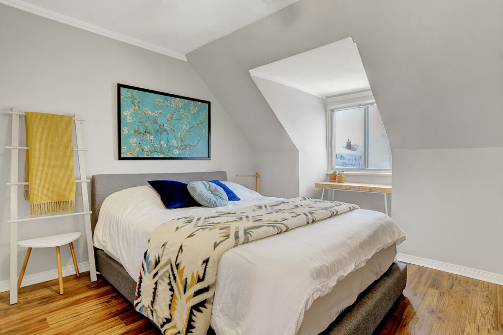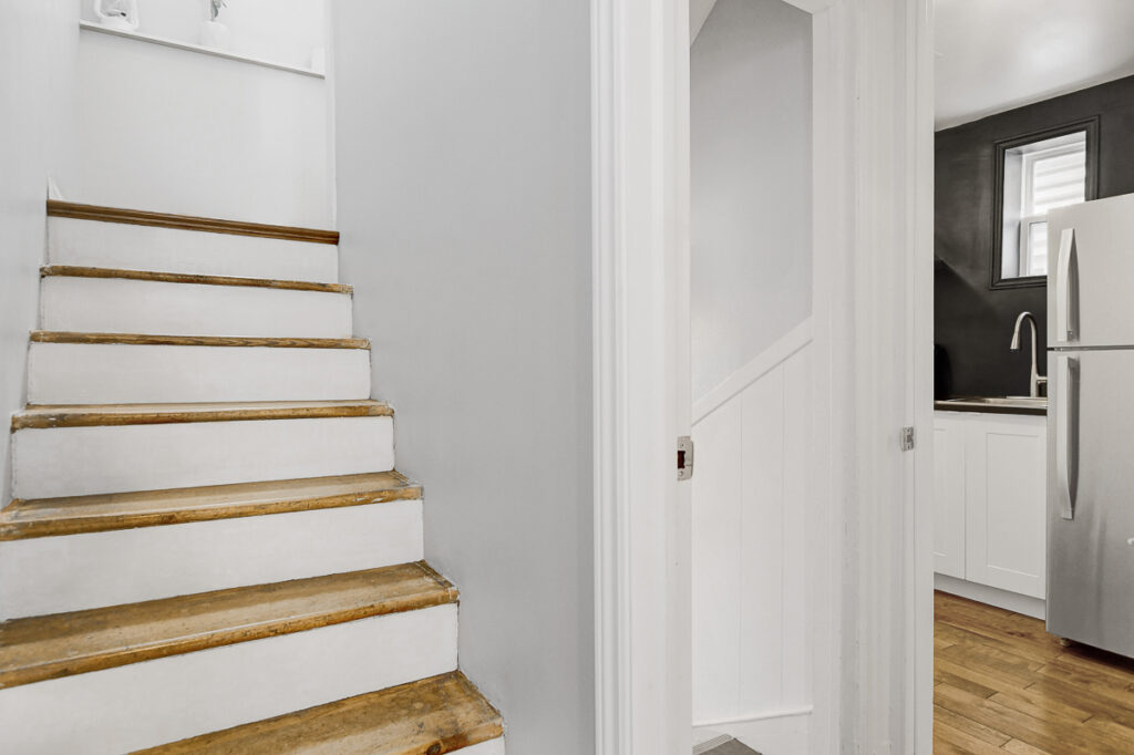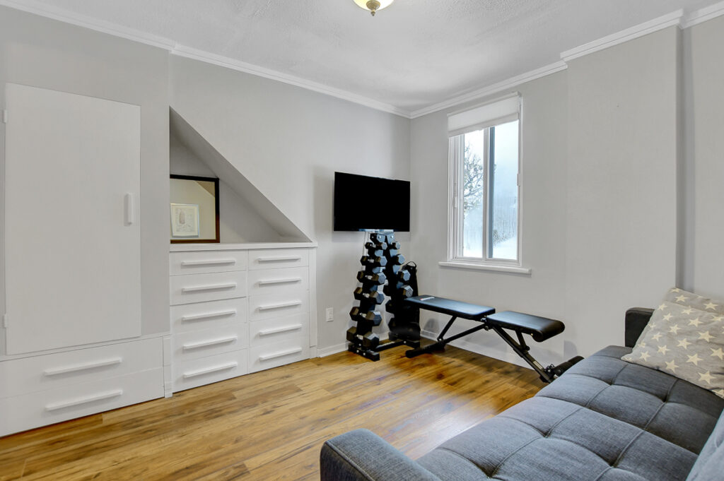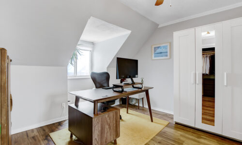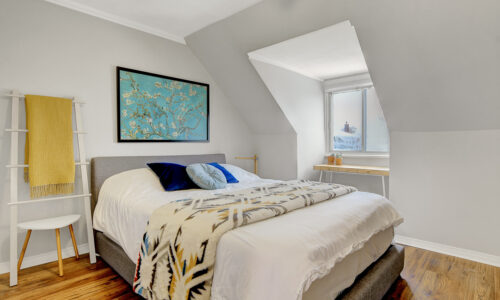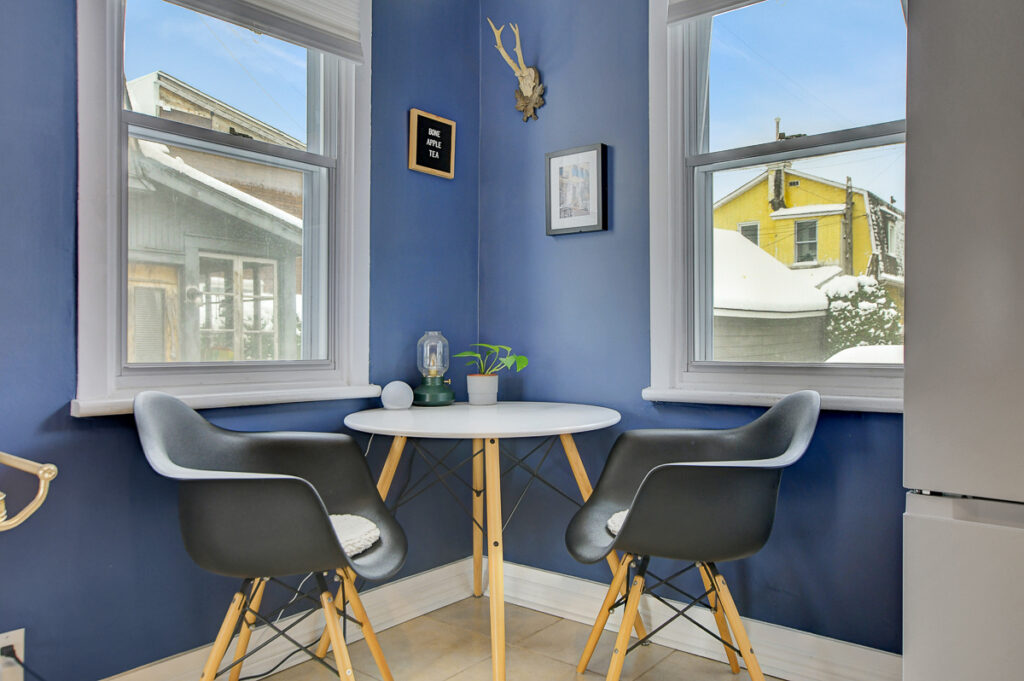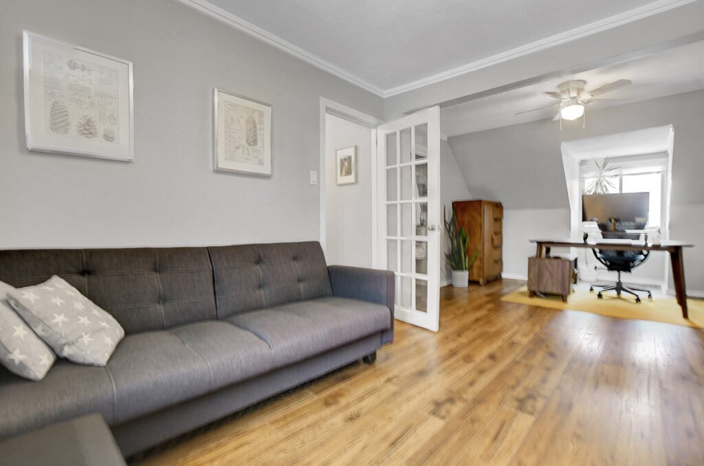 Welcoming foyer opens between the living & dining rooms, creating a natural flow through the main level. Fresh neutral tones, sunny natural light and classic hardwood floors preserve the home’s original charm. Dining area transitions into a spacious kitchen at the back of the home, offering ample cabinetry, generous storage and a comfortable eat-in space.The second unit, with both internal and separate exterior entrances makes it a great income opportunity; bright windows, a full bathroom, well-appointed kitchen and generous separate bedroom. Upstairs, the impressive primary bedroom features excellent built-in storage and closet space, crown moulding and a flexible layout with two distinct zones – a defined sleeping area plus a bonus sitting or work-from-home space. A second bedroom and a renovated full bathroom with a shower-tub combination complete this level.