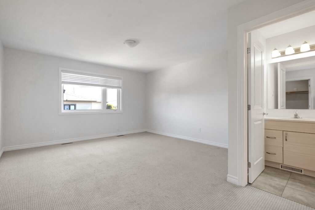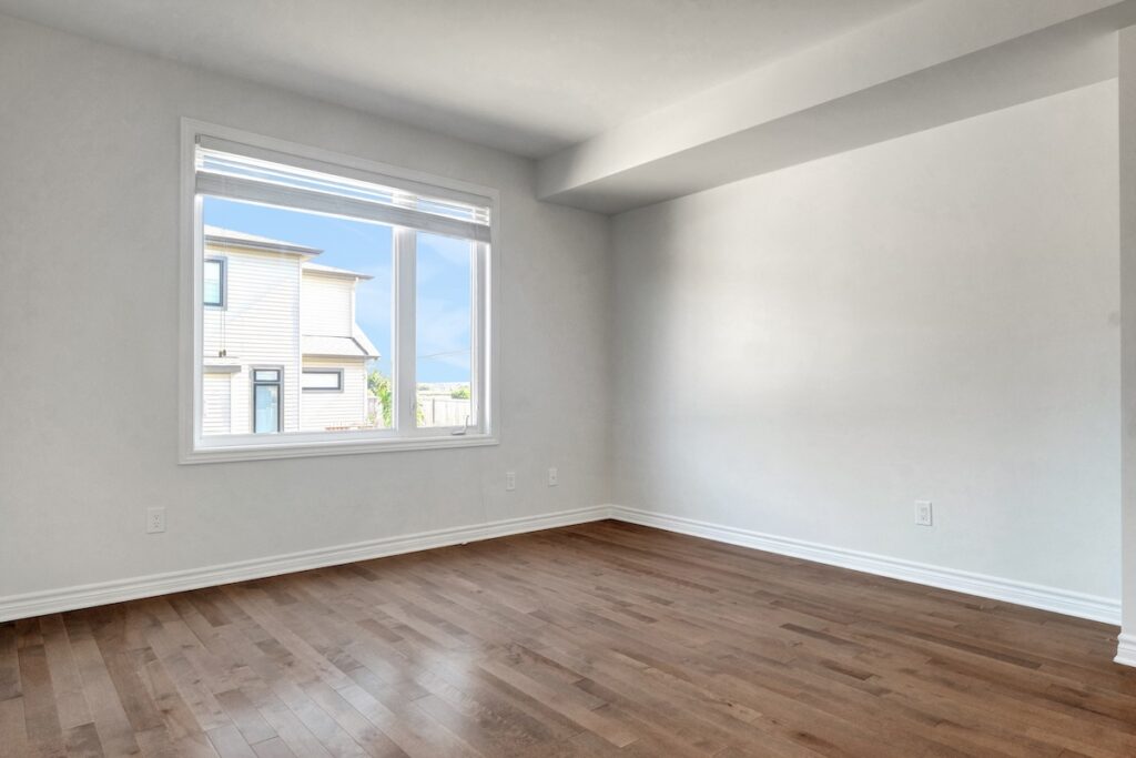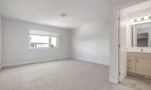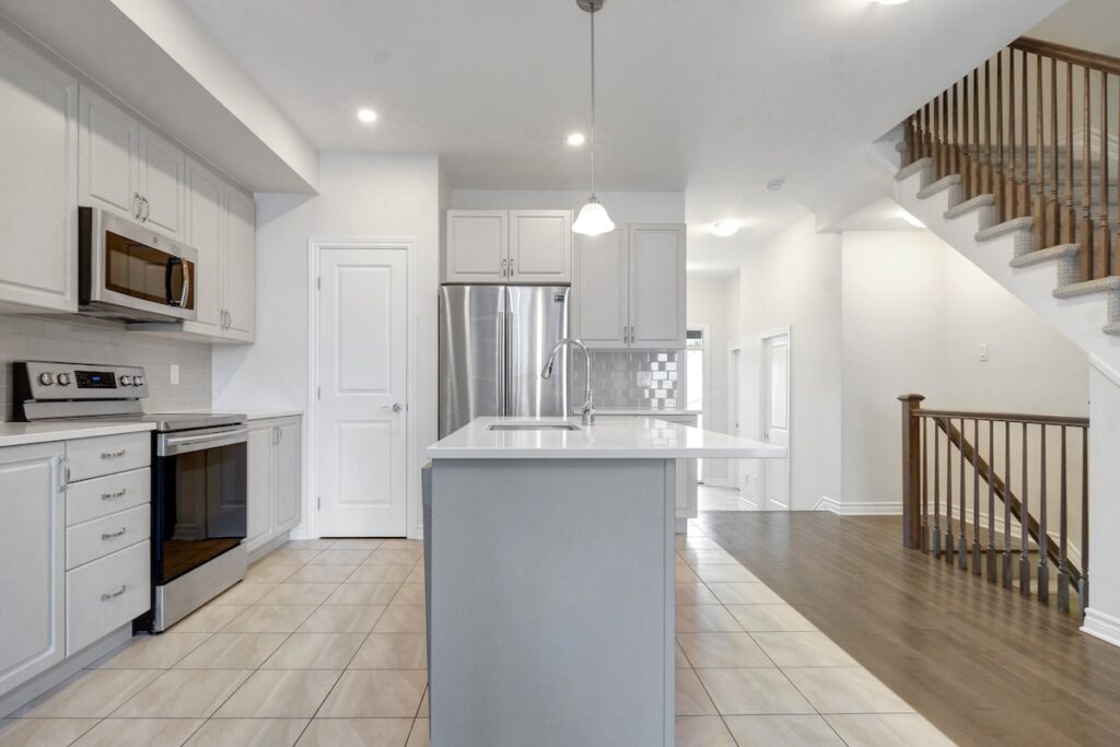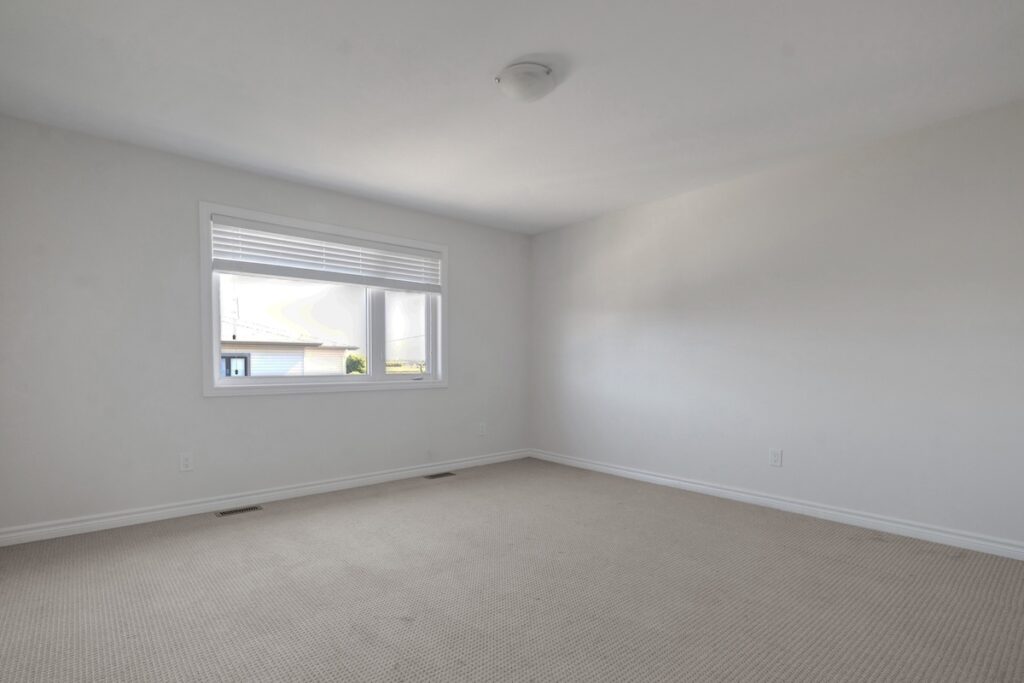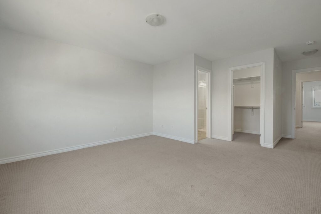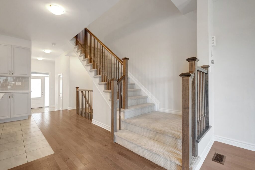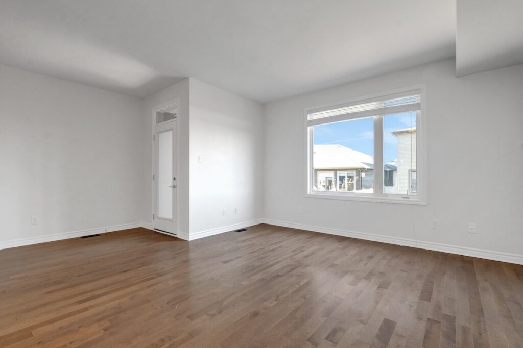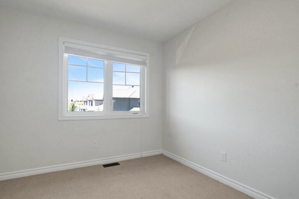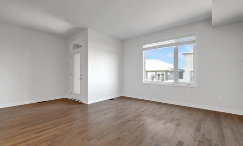 The exterior sets the tone with a dark colour palette, covered front entry, and attached single-car garage. Inside, a sunken foyer leads into the main level, where tall ceilings, mid-tone hardwood floors, and crisp white walls create an open & airy feel. The linear open-concept layout provides seamless sightlines throughout, while the neutral finishes form a timeless backdrop for any style. Sunlit living & dining areas overlook the classic kitchen, equally a stylish focal point of the home and a functional space for cooking and hosting. Finished with gleaming quartz countertops, a centre island with overhang seating, walk-in pantry and stainless-steel appliances. Upstairs, the primary bedroom retreat is a true highlight, generously sized bedroom, two walk-in closets including one oversized space, and a private ensuite bathroom with a glass-door shower. Two additional bedrooms, a full bathroom and the convenience of second-level laundry complete the upper floor.