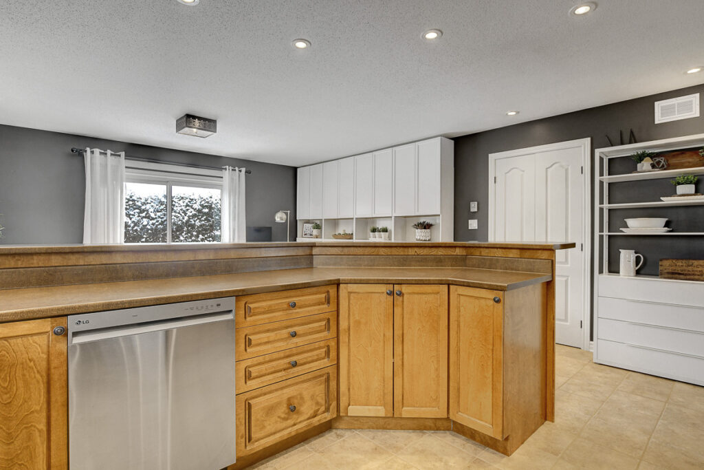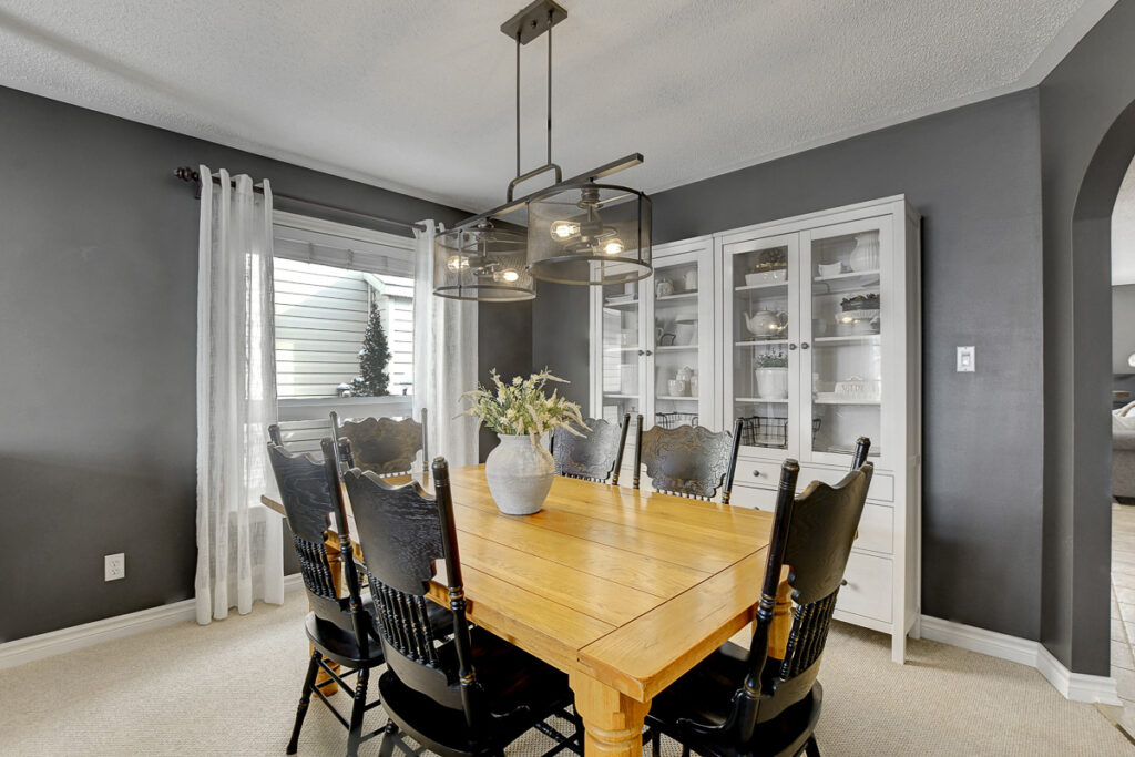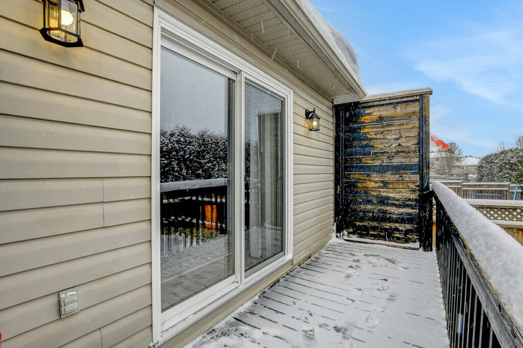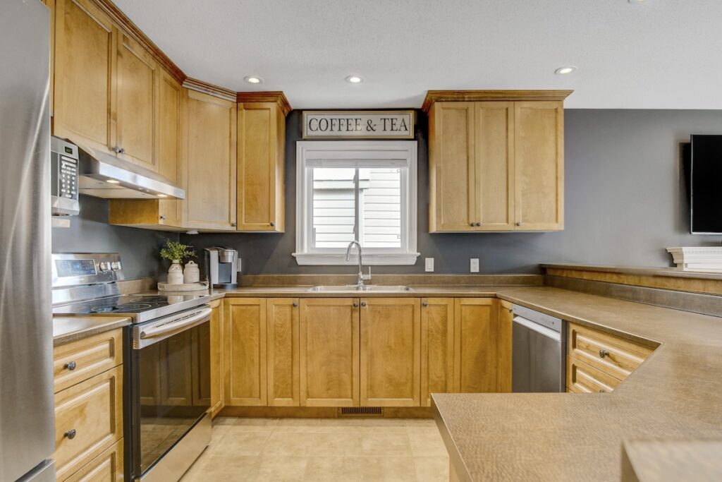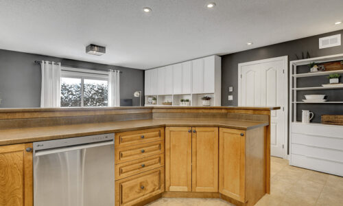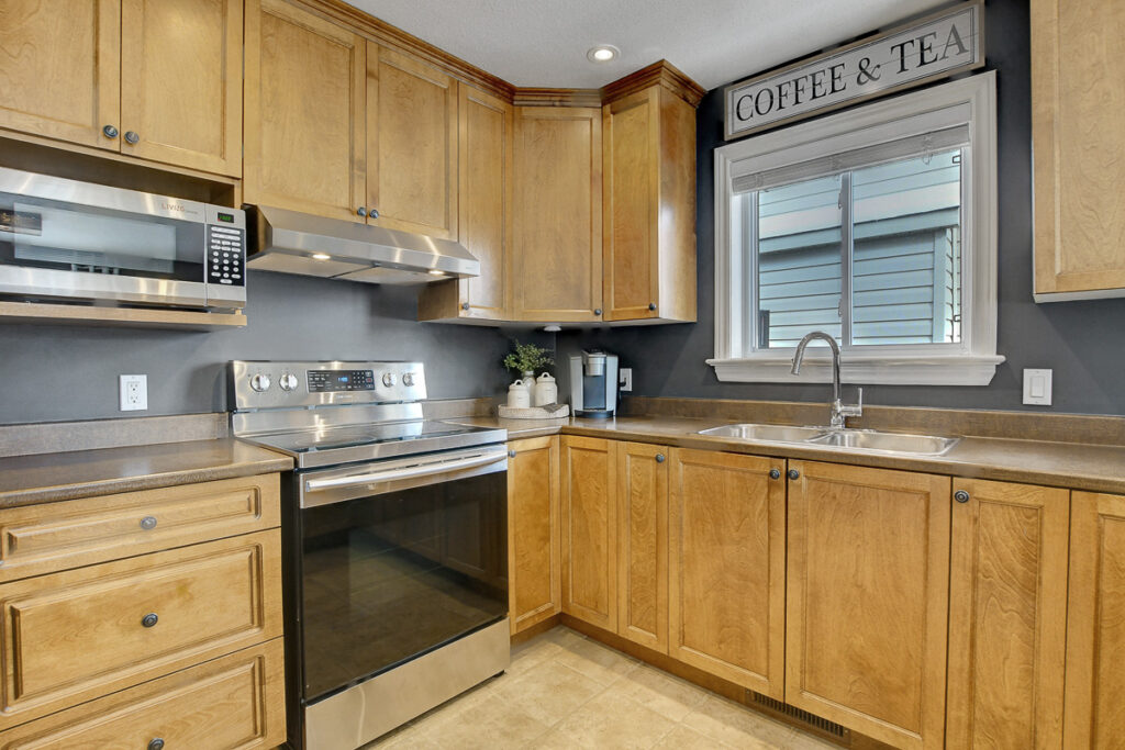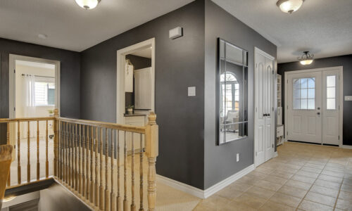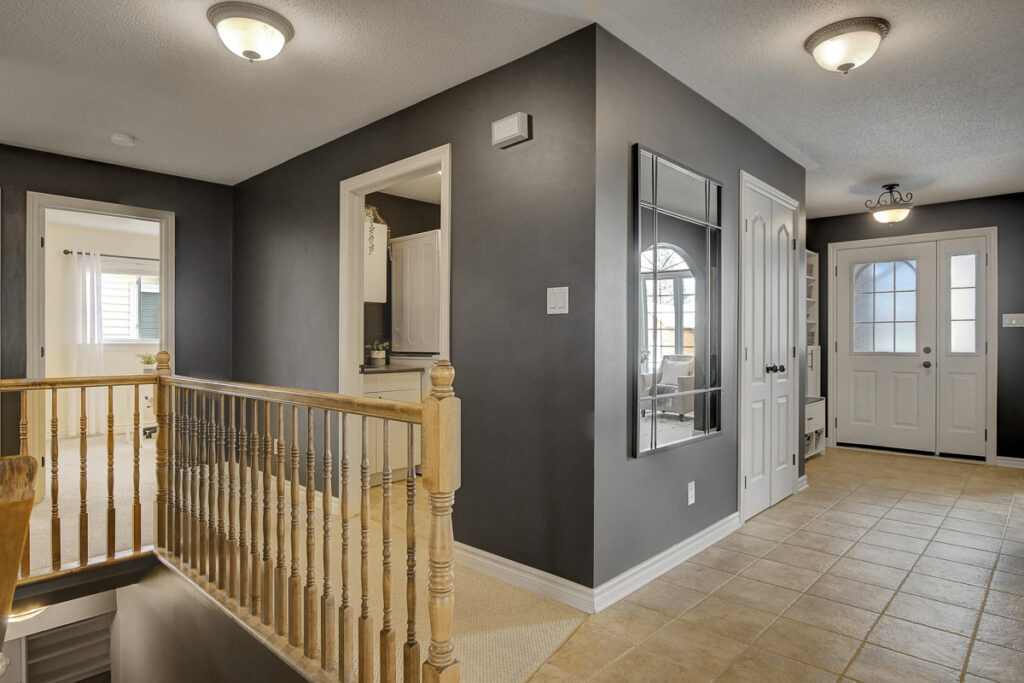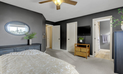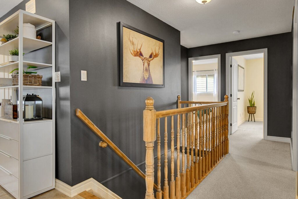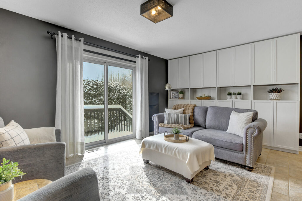 Effortless outdoor living with a main level walk-out deck leading into a fully fenced backyard lined with mature foliage for privacy. Low-maintenance, no-grass landscaping featuring a 13×13 patio & privacy wall.
