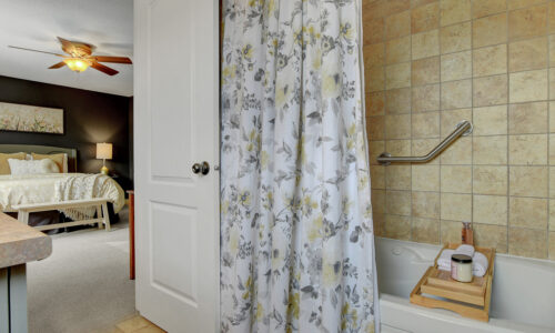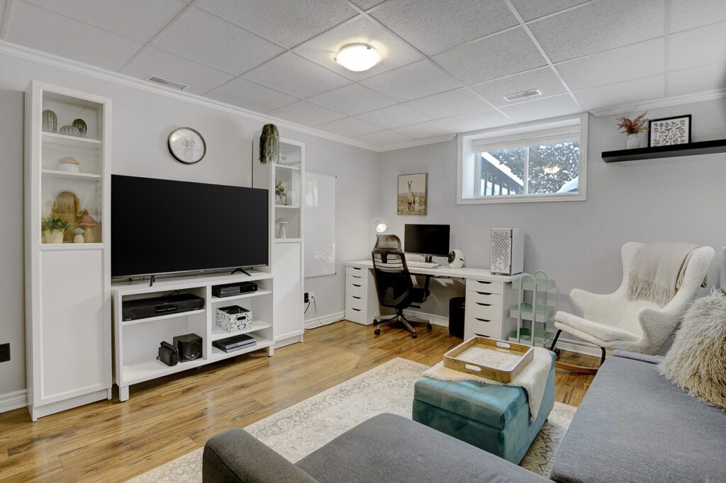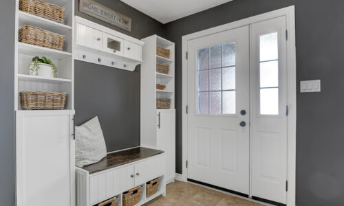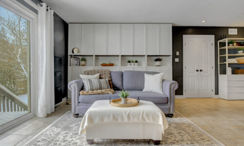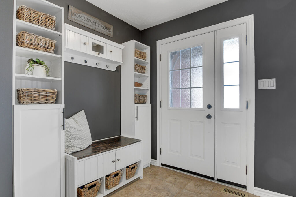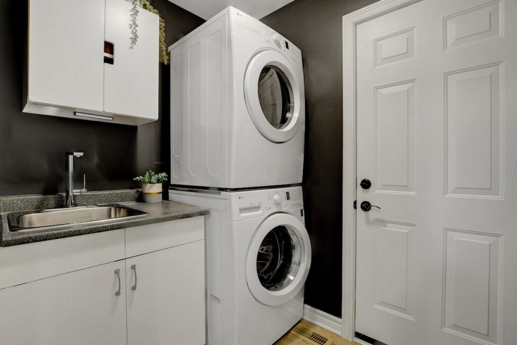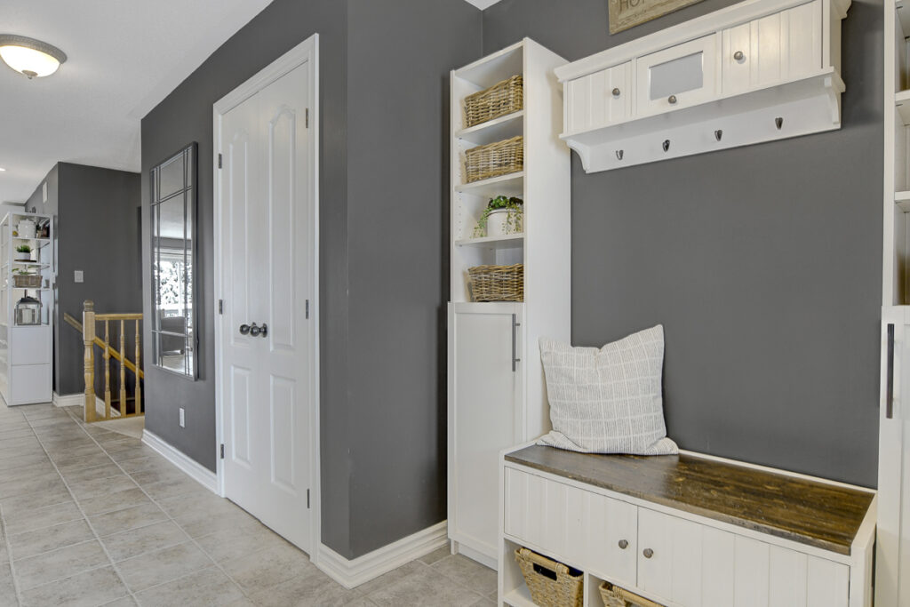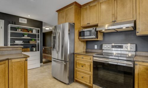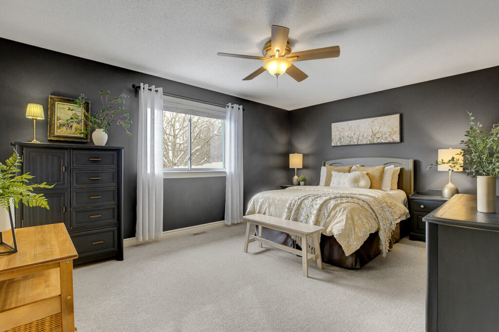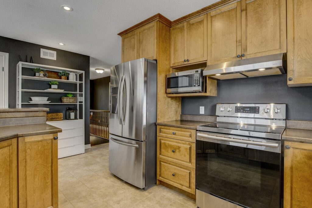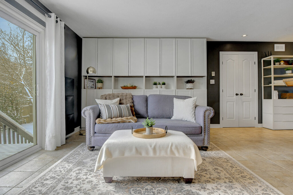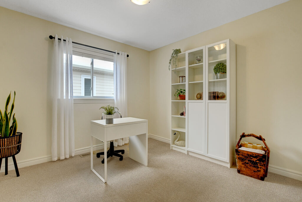 Effortless outdoor living with a main level walk-out deck leading into a fully fenced backyard lined with mature foliage for privacy. Low-maintenance, no-grass landscaping featuring a 13×13 patio & privacy wall.