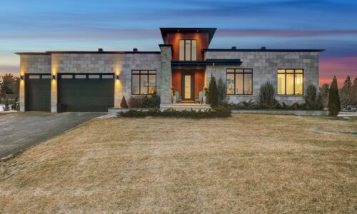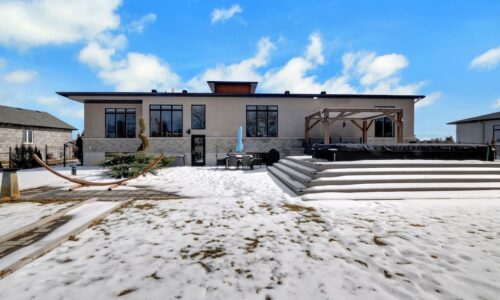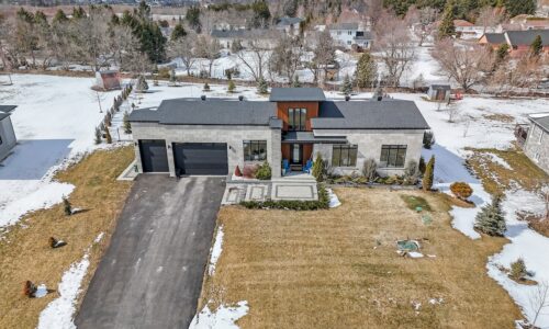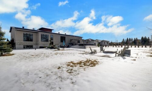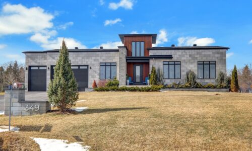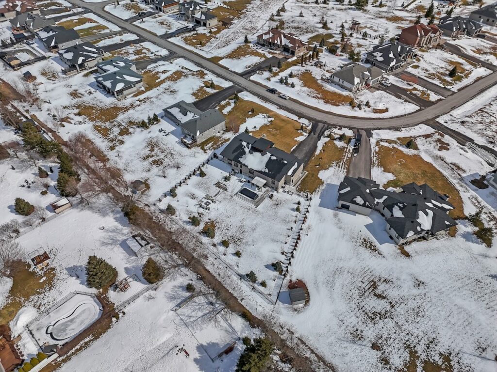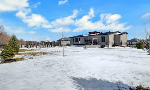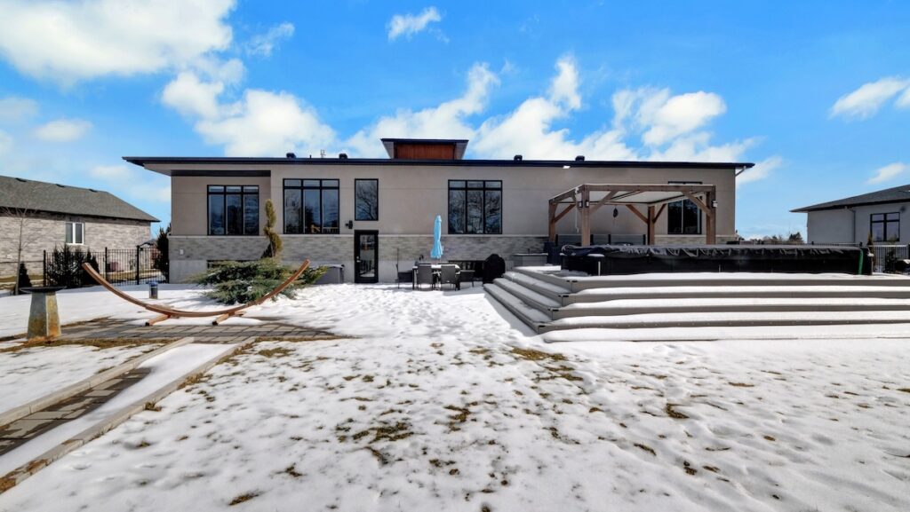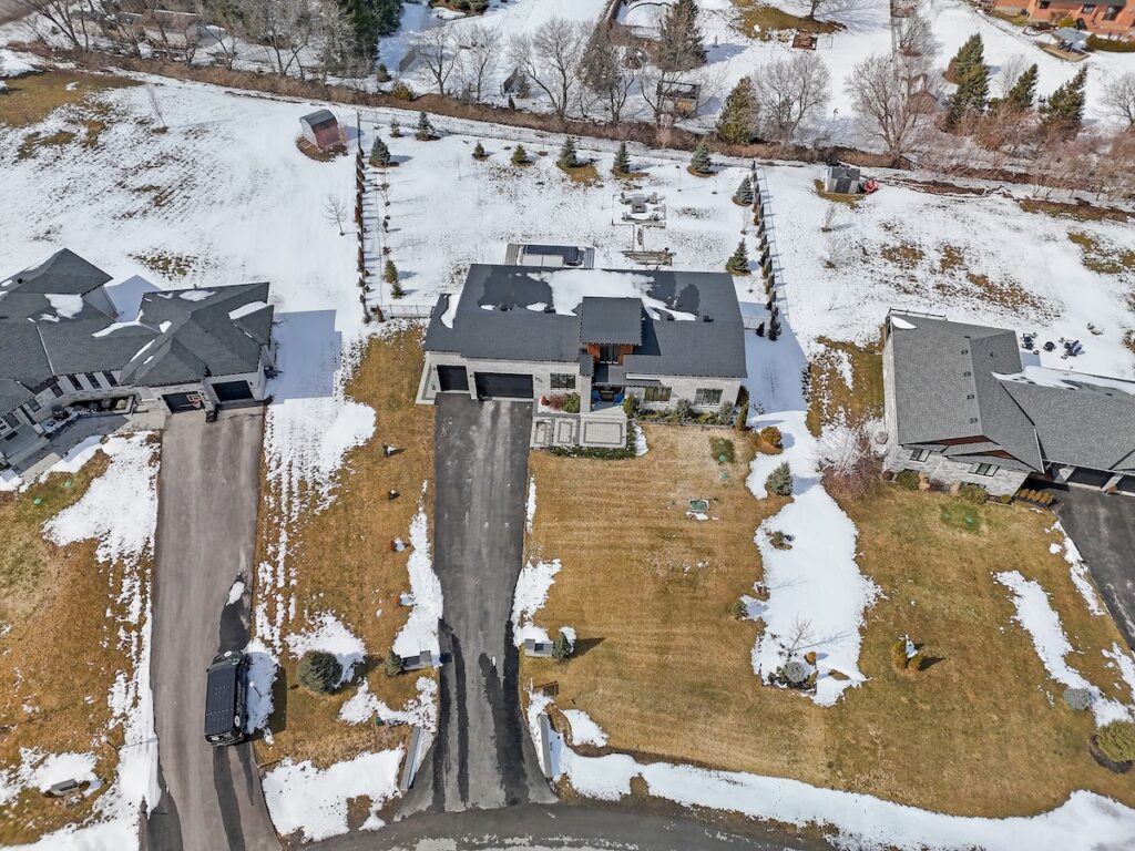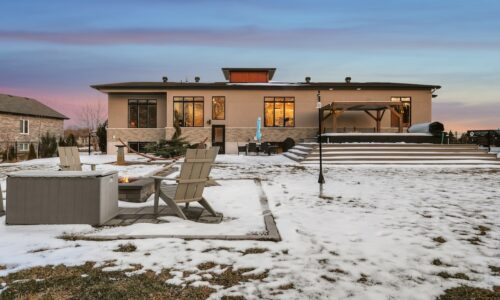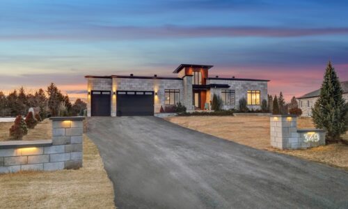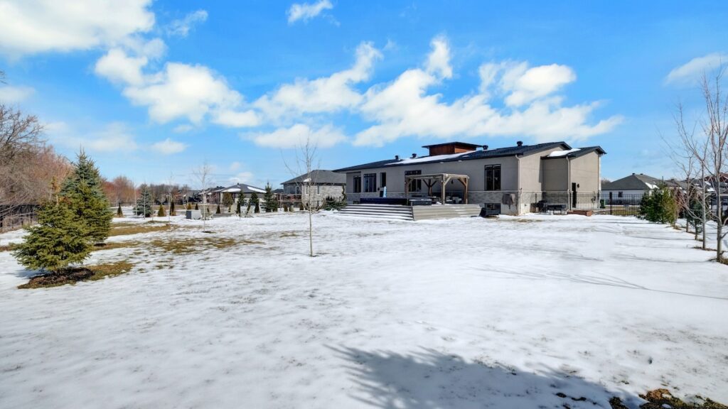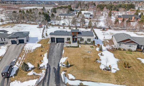 Built on a premium pie-shaped lot by Troia Homes, standout features include a fully finished triple-car garage, resort-style swim spa and a walkout lower level – all within a private enclave centered around a swimmable lake. Set well back from the road, long driveway, oversized stone walkway and covered entry. An 8-foot front door opens to a dramatic two-storey foyer, leading into a main level with 10-foot ceilings, hardwood flooring and a clean, modern palette with bold accents. Kitchen features glossy flat-panel white cabinetry, dark stone countertops, waterfall peninsula with seating & an eat-in area. Adjoining family room is centered around a statement gas fireplace. Elegant primary suite offers a spacious layout with walk-in closets and a spa-inspired ensuite.