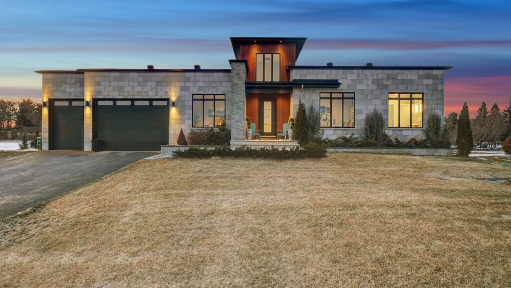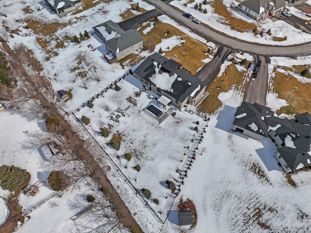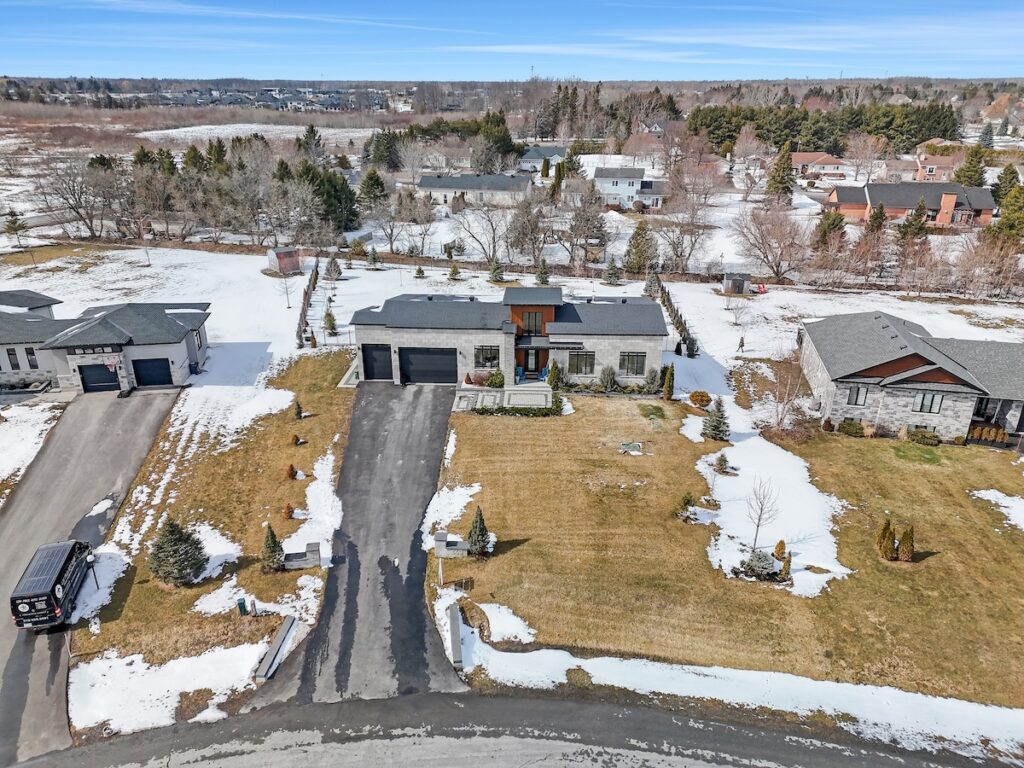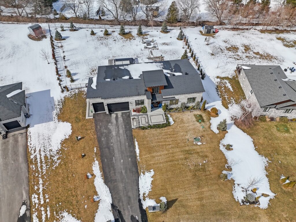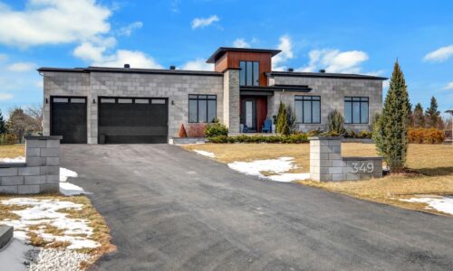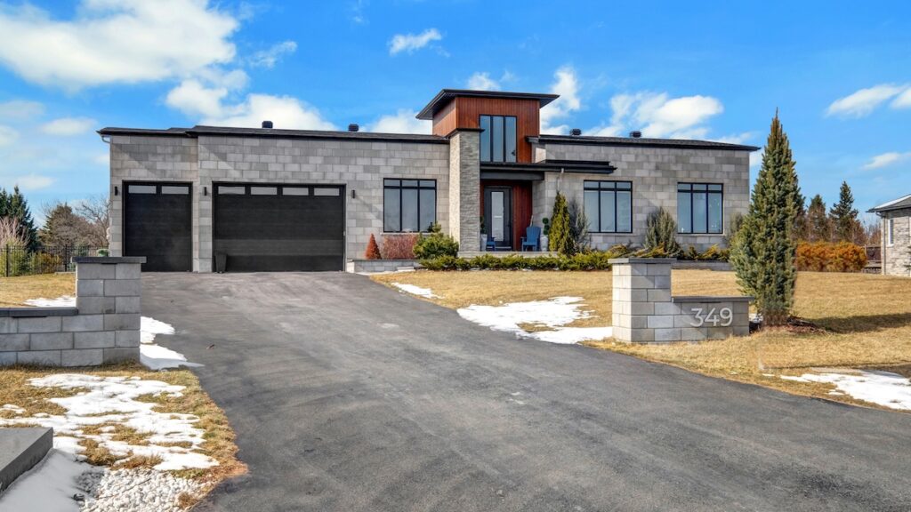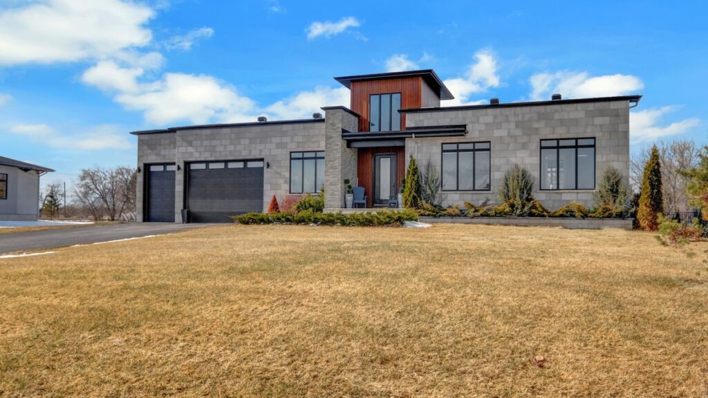 Built on a premium pie-shaped lot by Troia Homes, standout features include a fully finished triple-car garage, resort-style swim spa and a walkout lower level – all within a private enclave centered around a swimmable lake. Set well back from the road, long driveway, oversized stone walkway and covered entry. An 8-foot front door opens to a dramatic two-storey foyer, leading into a main level with 10-foot ceilings, hardwood flooring and a clean, modern palette with bold accents. Kitchen features glossy flat-panel white cabinetry, dark stone countertops, waterfall peninsula with seating & an eat-in area. Adjoining family room is centered around a statement gas fireplace. Elegant primary suite offers a spacious layout with walk-in closets and a spa-inspired ensuite.