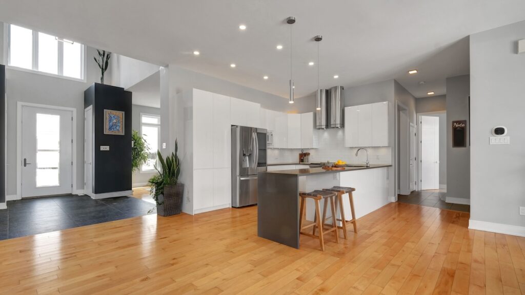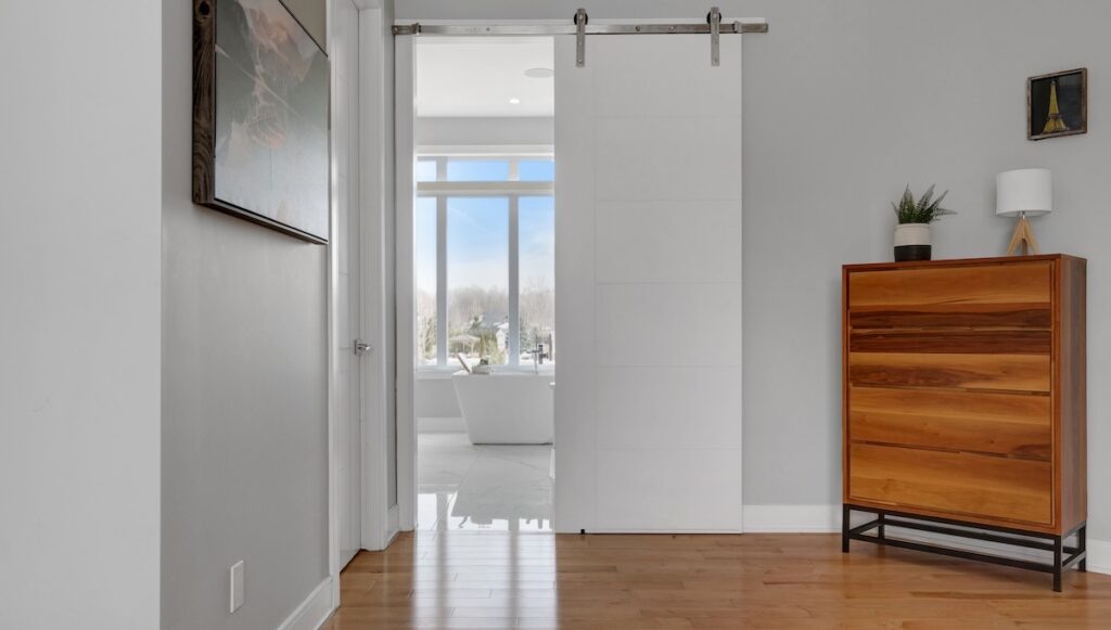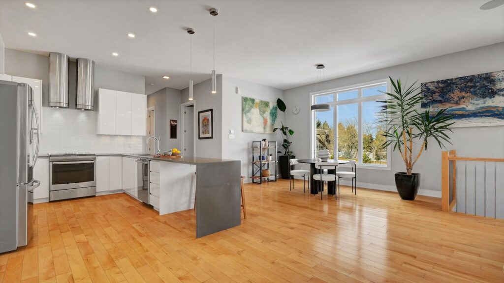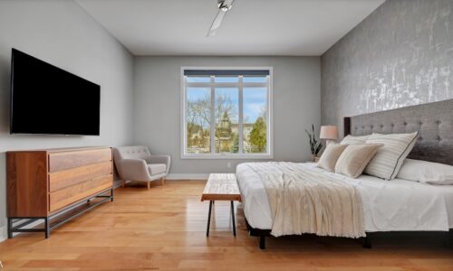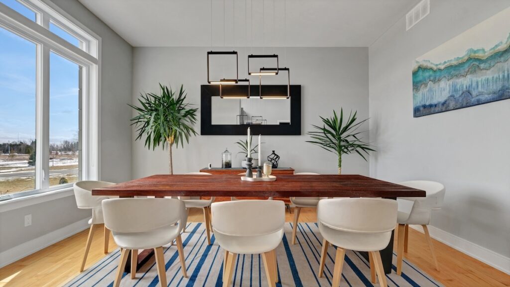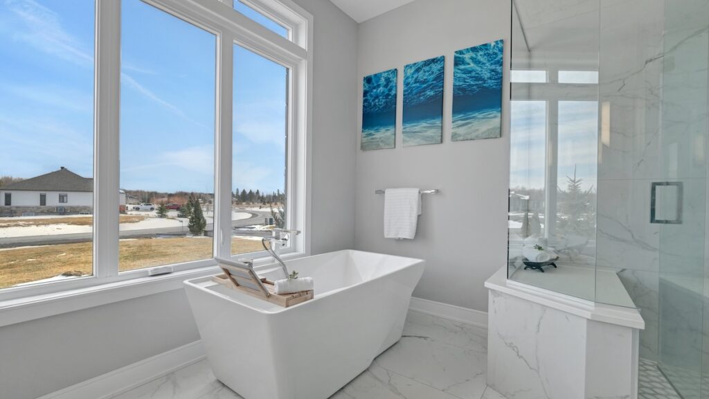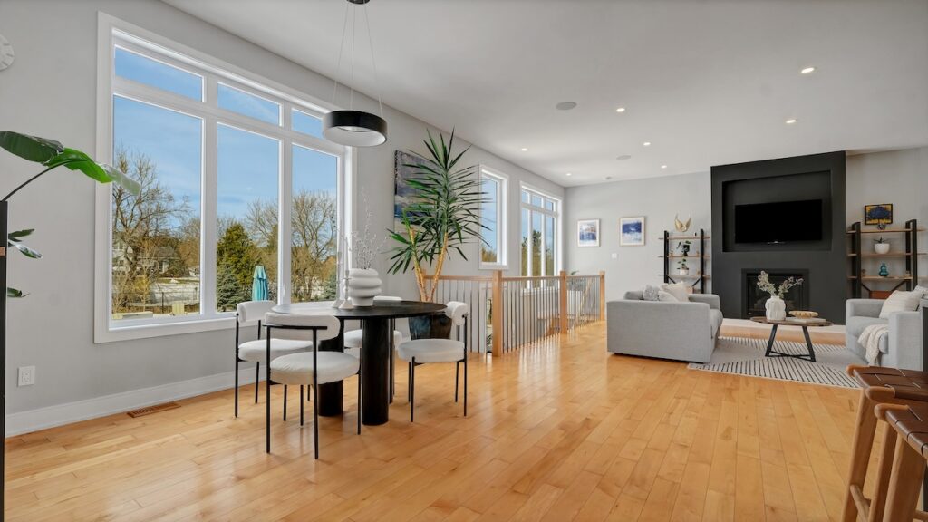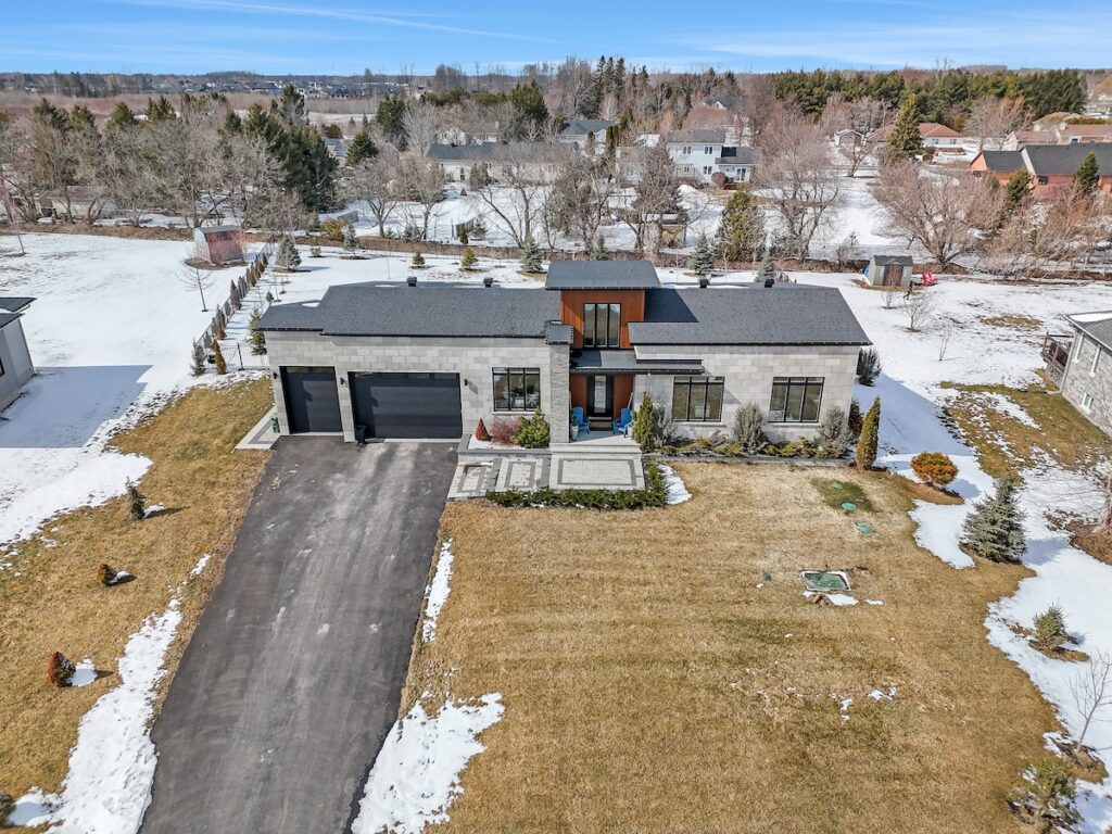 Built on a premium pie-shaped lot by Troia Homes, standout features include a fully finished triple-car garage, resort-style swim spa and a walkout lower level – all within a private enclave centered around a swimmable lake. Set well back from the road, long driveway, oversized stone walkway and covered entry. An 8-foot front door opens to a dramatic two-storey foyer, leading into a main level with 10-foot ceilings, hardwood flooring and a clean, modern palette with bold accents. Kitchen features glossy flat-panel white cabinetry, dark stone countertops, waterfall peninsula with seating & an eat-in area. Adjoining family room is centered around a statement gas fireplace. Elegant primary suite offers a spacious layout with walk-in closets and a spa-inspired ensuite.