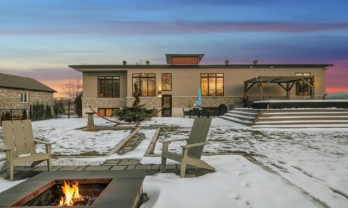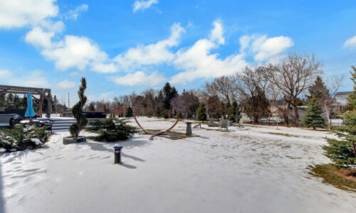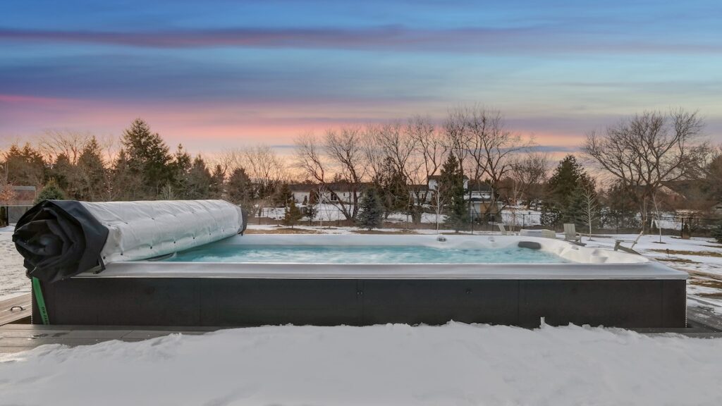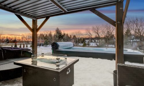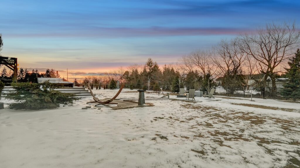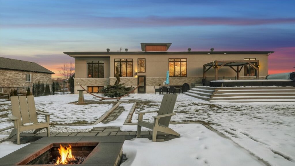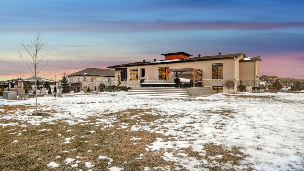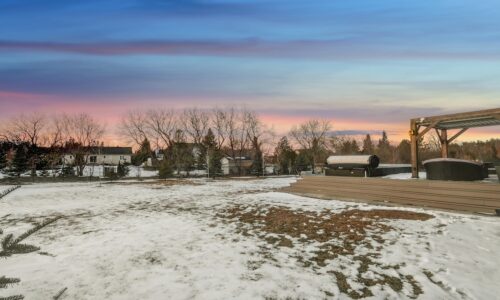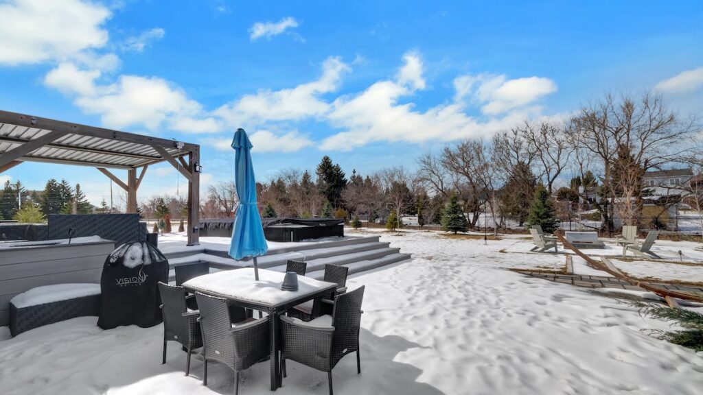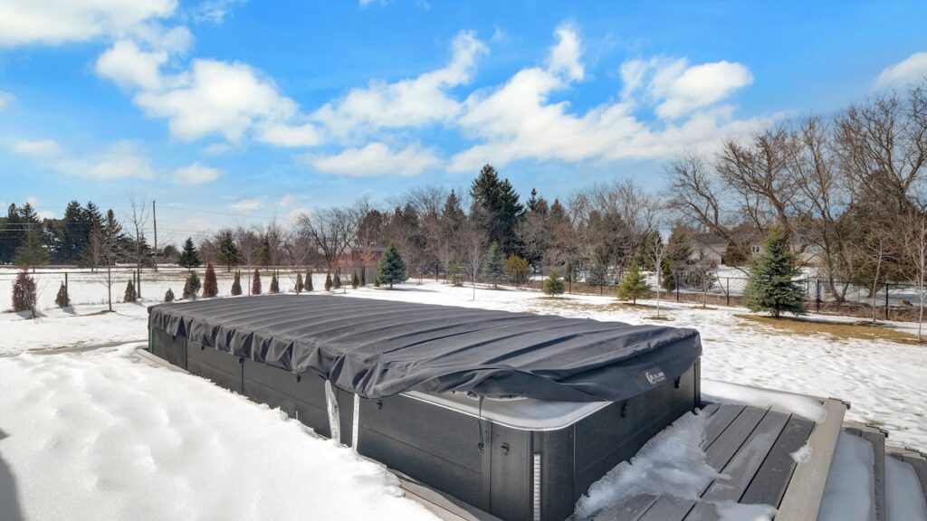 Huge backyard acts as a private retreat centered around an XL composite deck with an integrated swim spa for year-round enjoyment. Fully fenced and peppered with trees for privacy, stone patio, firepit area, raised garden beds, irrigation system and multiple seating zones designed to capture sunset views.