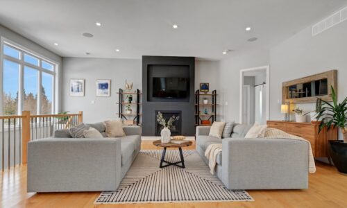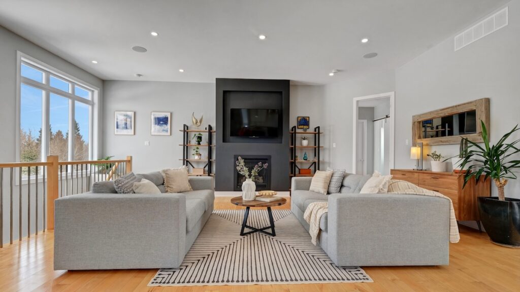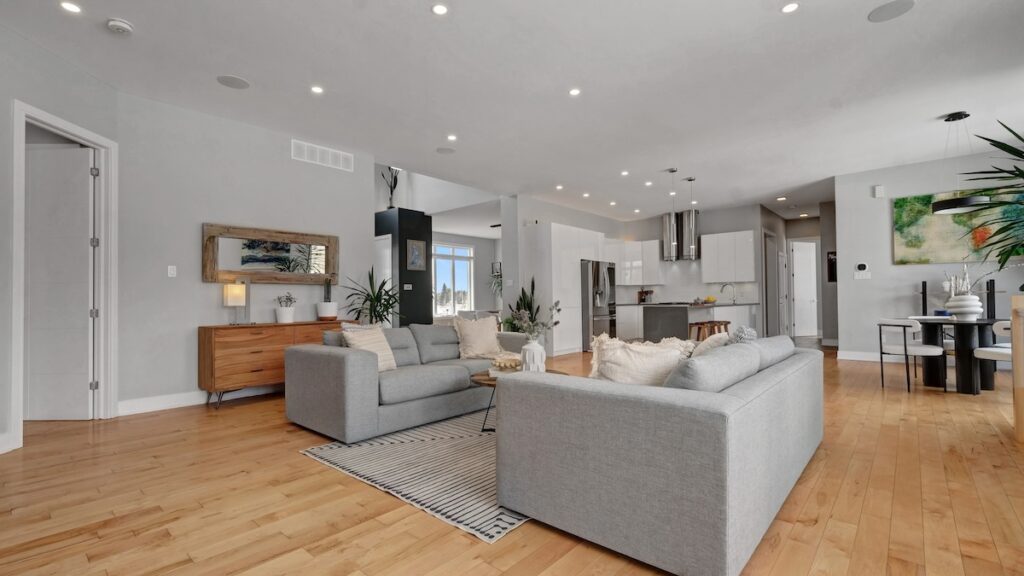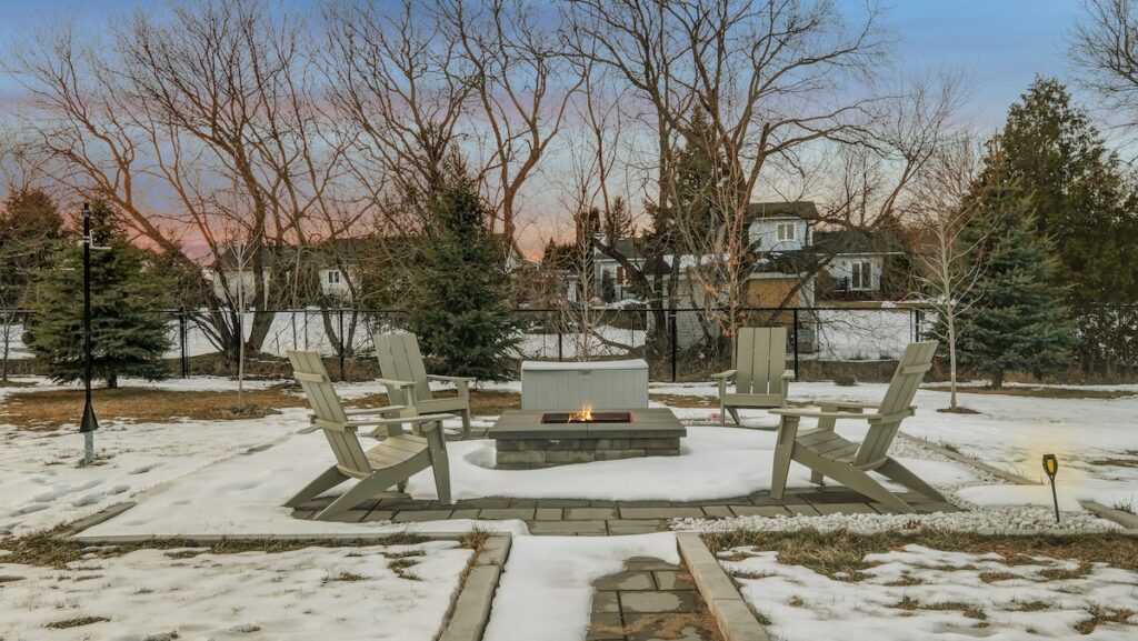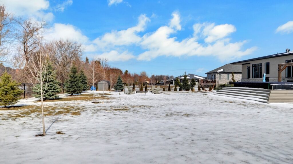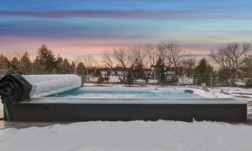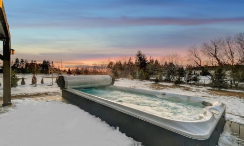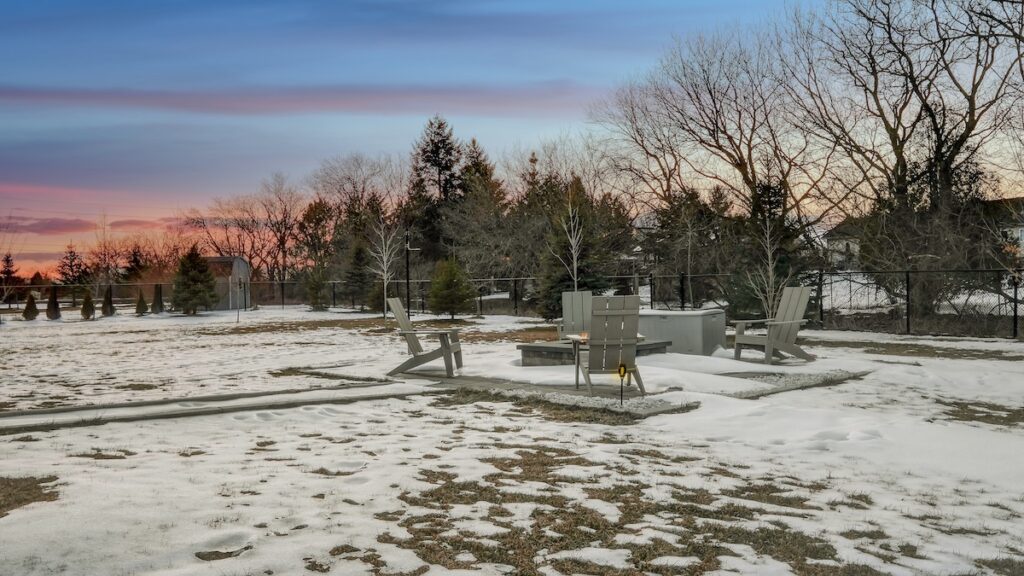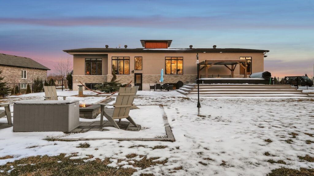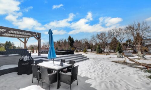 Huge backyard acts as a private retreat centered around an XL composite deck with an integrated swim spa for year-round enjoyment. Fully fenced and peppered with trees for privacy, stone patio, firepit area, raised garden beds, irrigation system and multiple seating zones designed to capture sunset views.