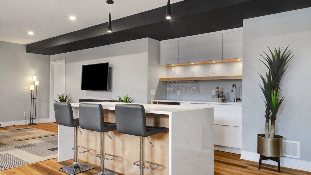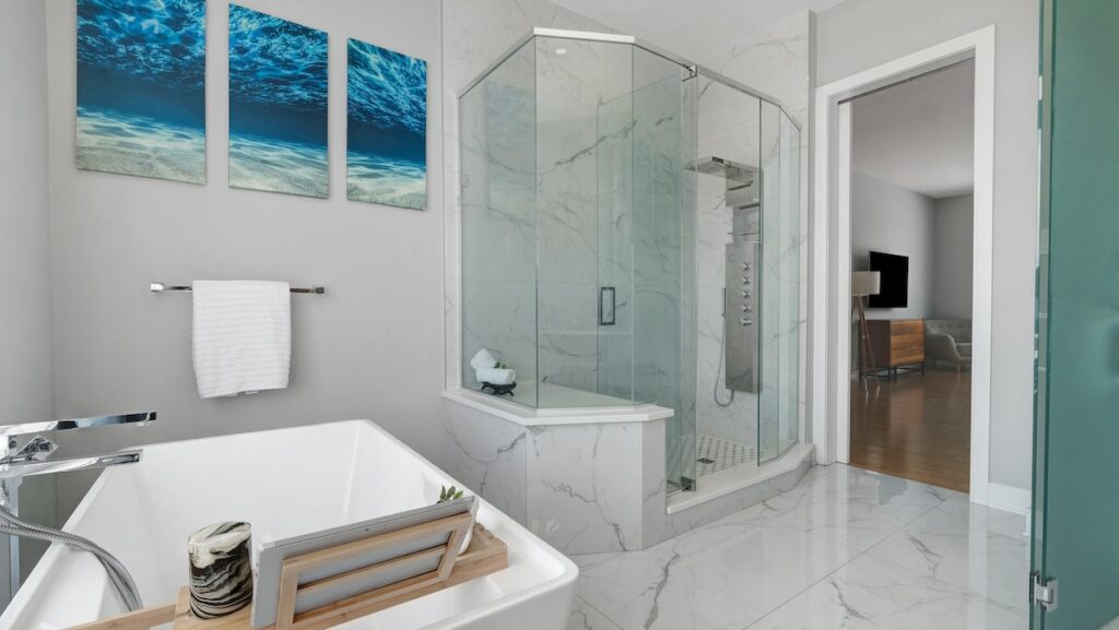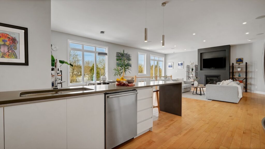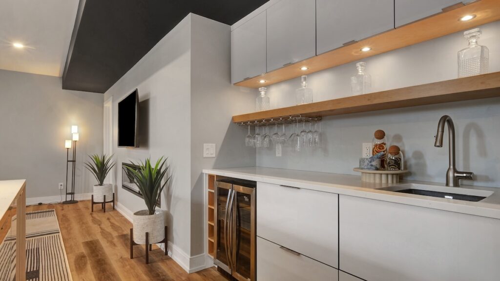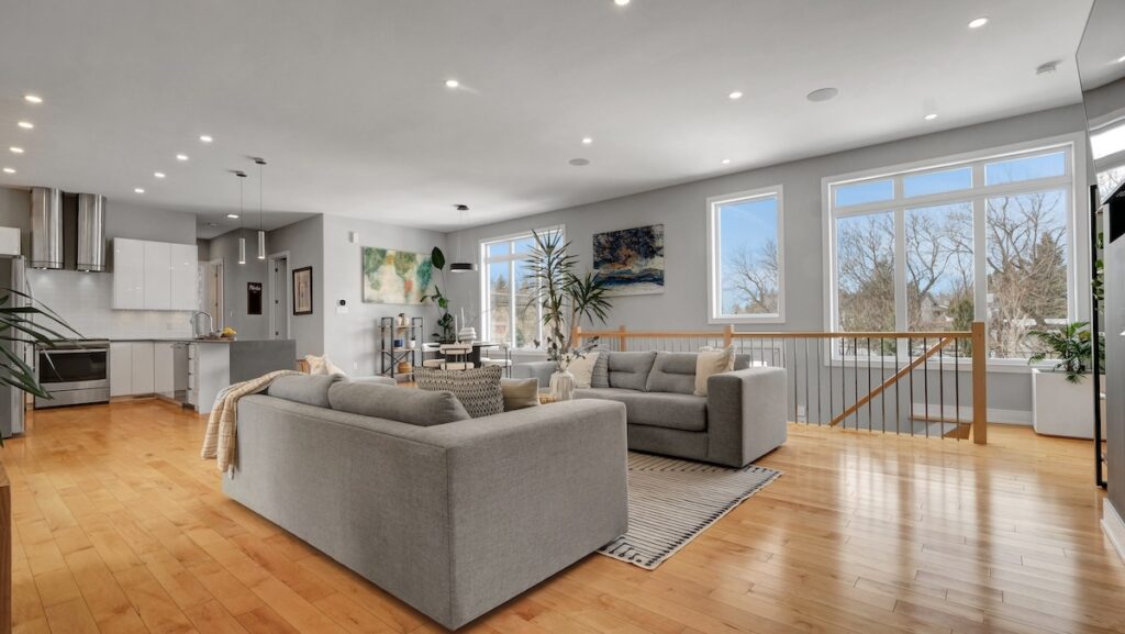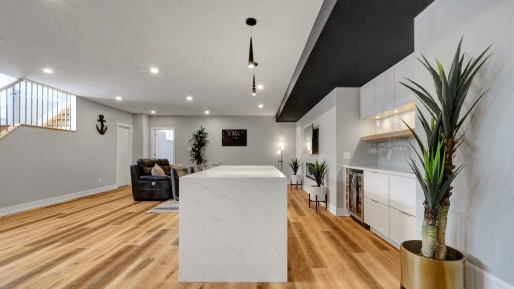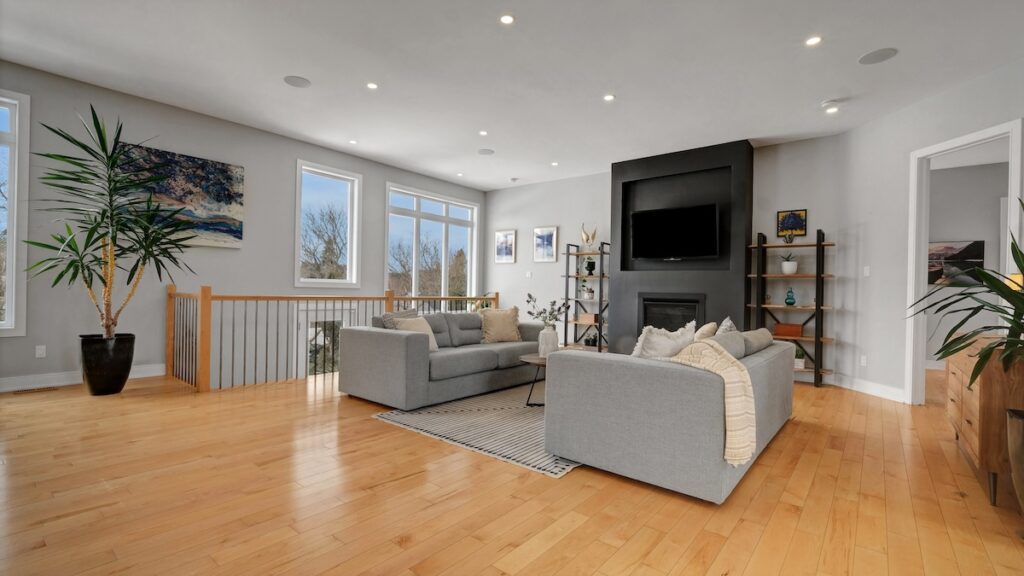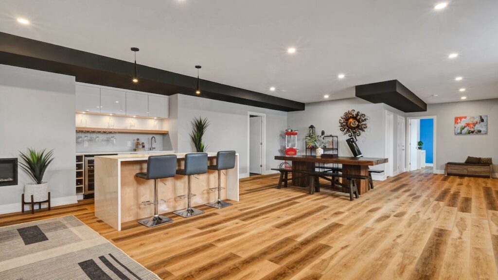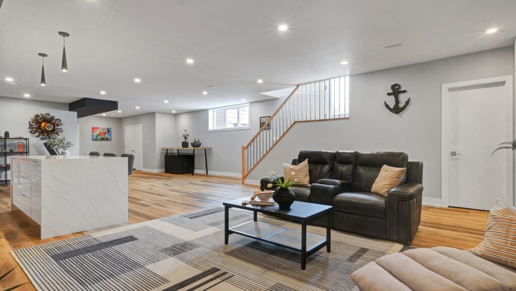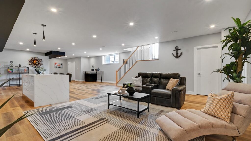 Fully finished walkout lower level features 9-foot ceilings and separate access through both the home & garage – ideal for multi-generational living or potential future income.