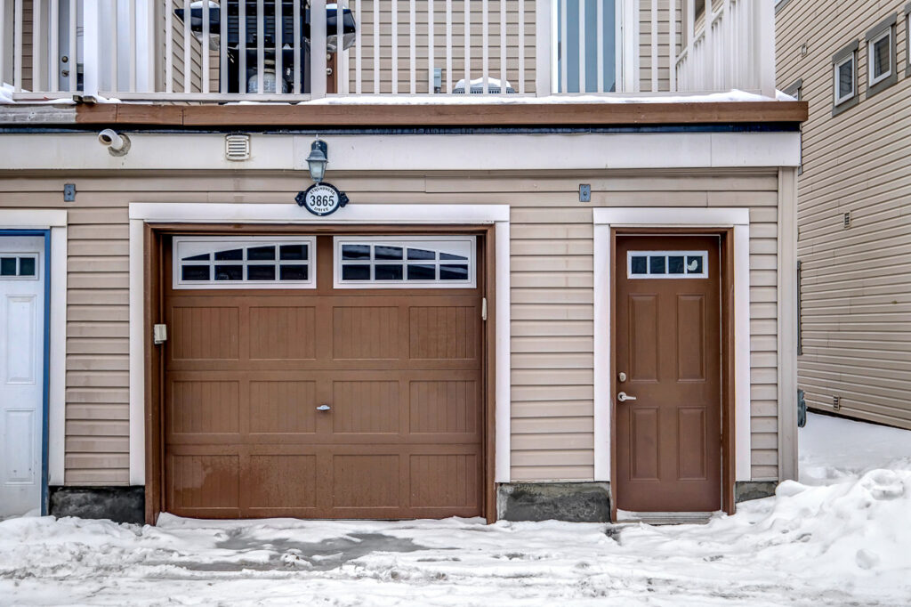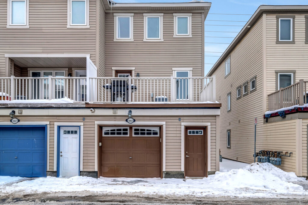 An end unit with extra windows at the front & back, it provides a sense of openness that sets it apart. Attached oversized single garage offers plenty of storage and interior access with a walkthrough from garage to front door. First floor features a conveniently located laundry area, dark wood toned laminate flooring, and a secondary flexible living space that could double as a family room or home office. A spacious living room on the second level opens onto a balcony, perfect for entertaining or relaxing outdoors. The kitchen is bright and functional with warm wood cabinetry, stainless steel appliances, subway tile backsplash, deep-toned countertops & plenty of storage. Adjacent dining area enjoys its own balcony, ideal for morning coffee or casual meals. The top floor hosts three great-sized bedrooms with carpeted floors for comfort. Primary suite includes a walk-in closet and a private ensuite bath. Thoughtful design, bright interiors, and multiple balconies to enjoy the sunsets and mature trees, this home offers a comfortable and inviting lifestyle in a sought-after neighbourhood.