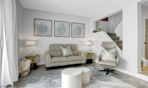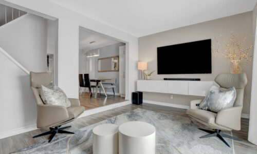 Ideally set on a quiet court, this beautifully updated condo townhome boasts serene contemporary style! Raised wood walkway leads to the front door, creating an inviting sitting area.