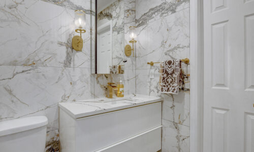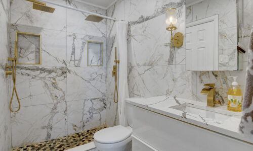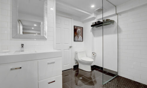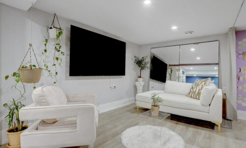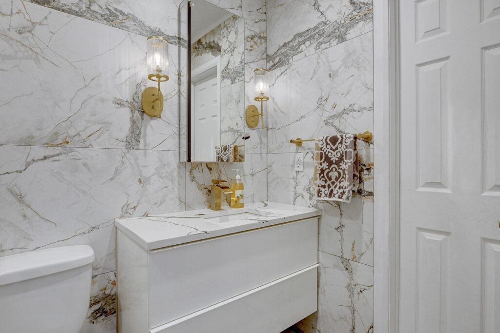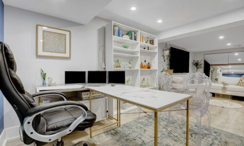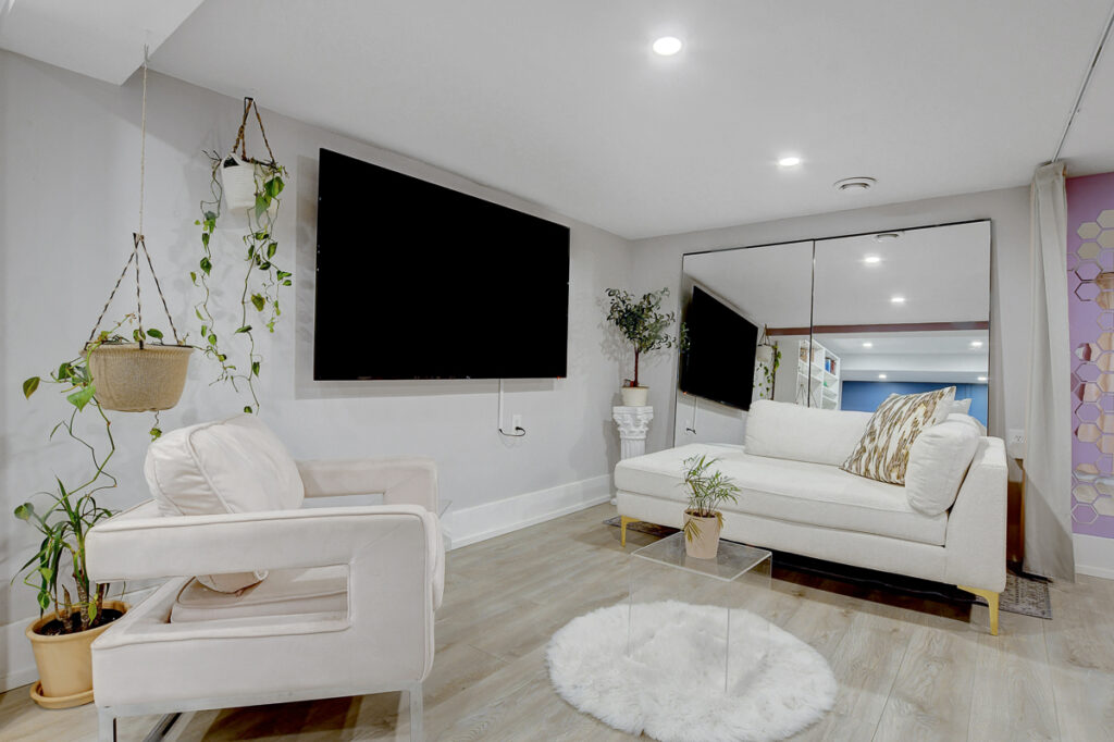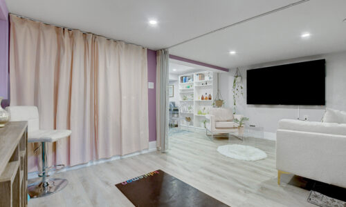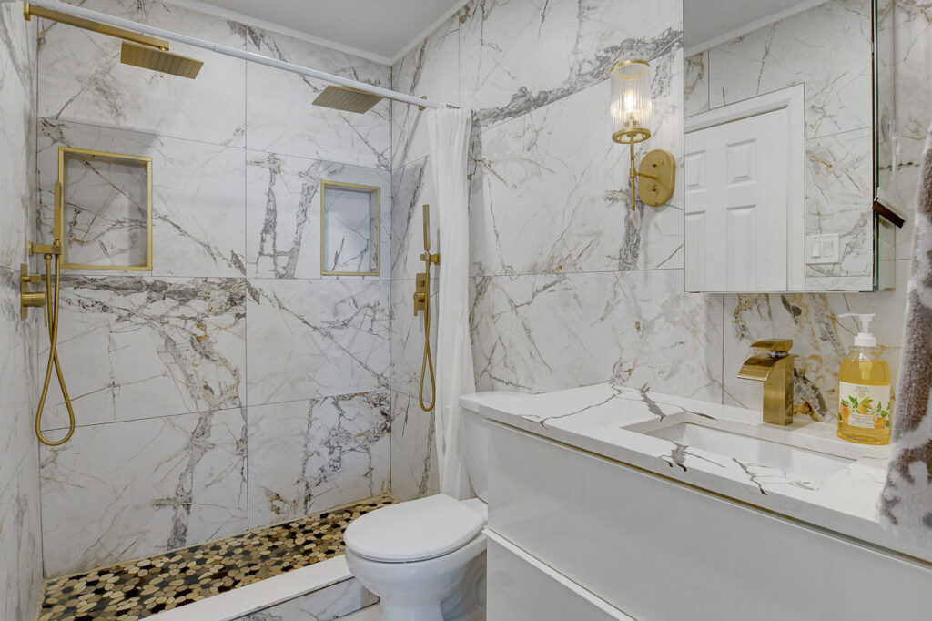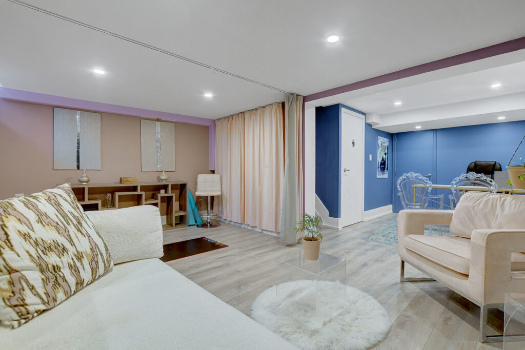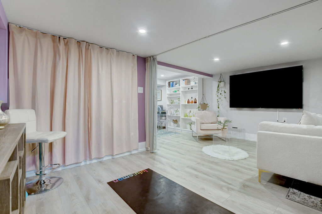 Fully finished basement expands the living space significantly with an L-shaped layout that creates nicely defined zones for a recreation room, home office, or hobby space. A second full bathroom features an oversized glass-panel shower & striking tile design.